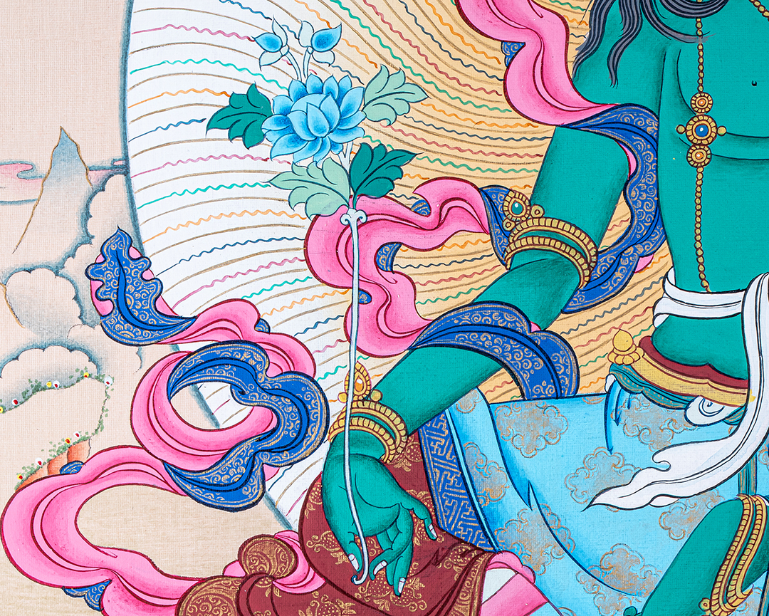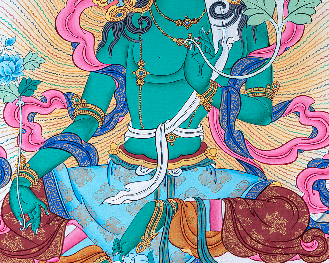 Hand Painted Green Tara Thangka Painting I Mother of Compassion