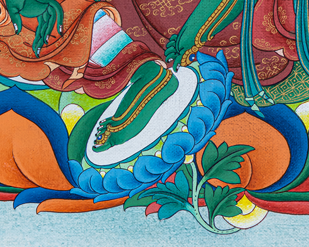 P.S. All thankas are painted taking references from Buddhist books following the correct iconography and by master artists, making it authentic traditional handmade Tibetan art. The subtle facial expression is one factor to distinguish the real effort put into creating this masterpiece.