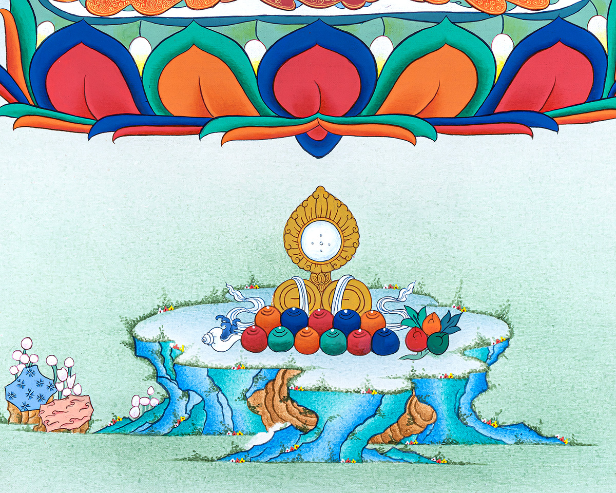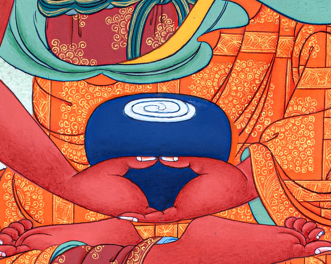 P.S. All thankas are painted taking references from Buddhist books following the correct iconography and by master artists, making it authentic traditional handmade Tibetan art. The subtle facial expression is one factor to distinguish the real effort put into creating this masterpiece.