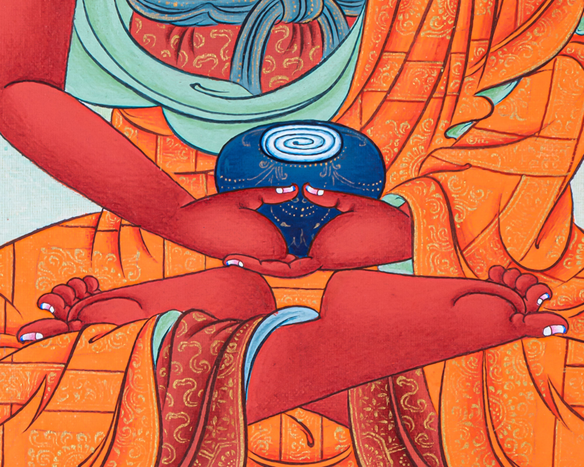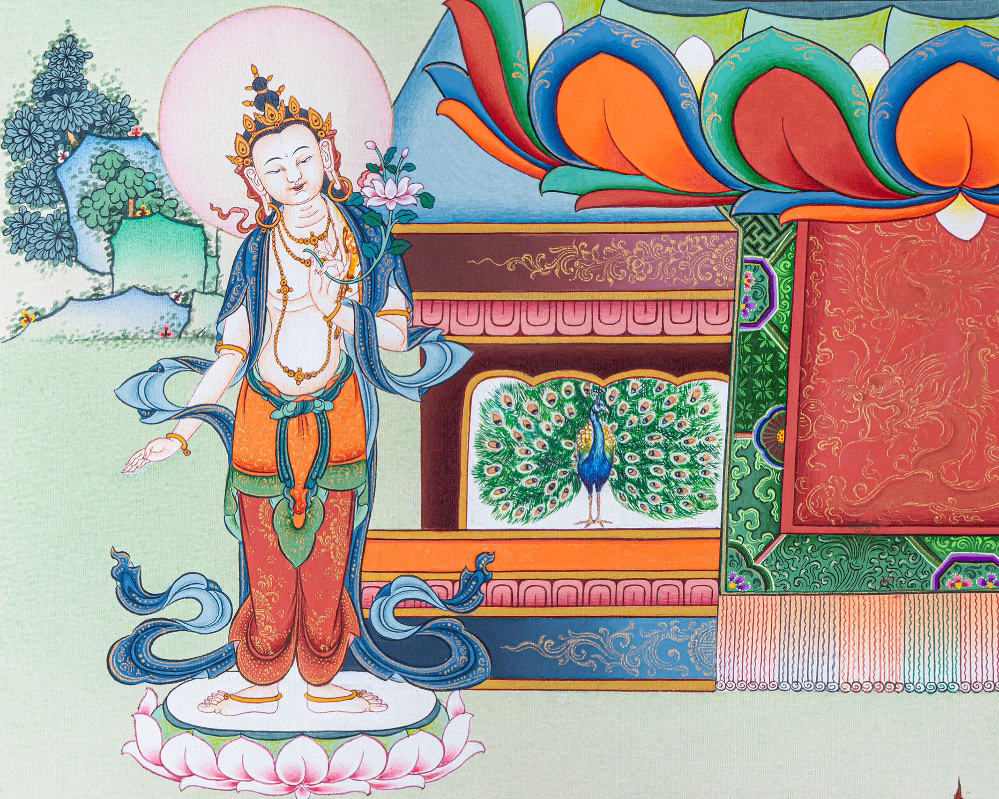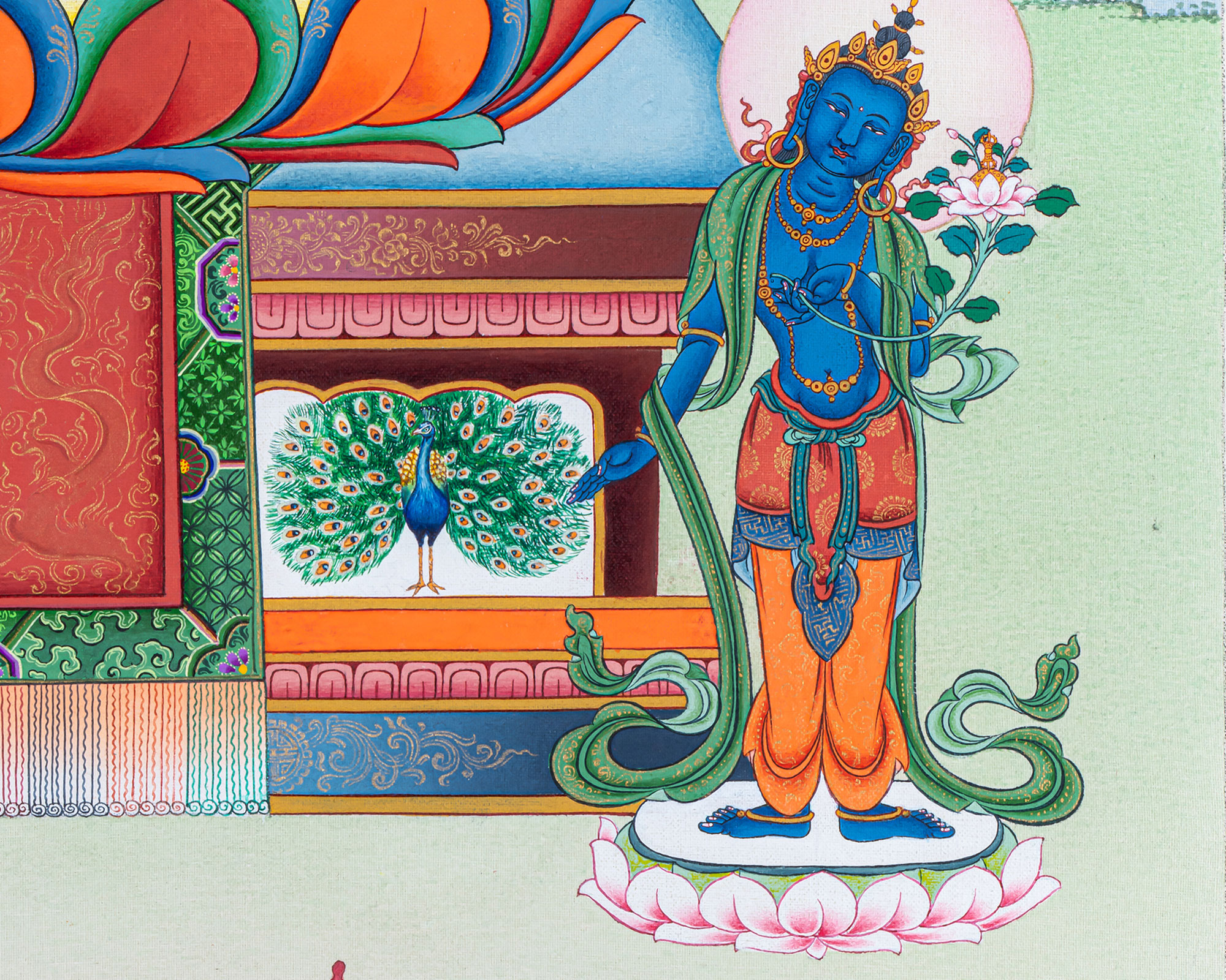 P.S. All thankas are painted taking references from Buddhist books following the correct iconography and by master artists, making it authentic traditional handmade Tibetan art. The subtle facial expression is one factor to distinguish the real effort put into creating this masterpiece.