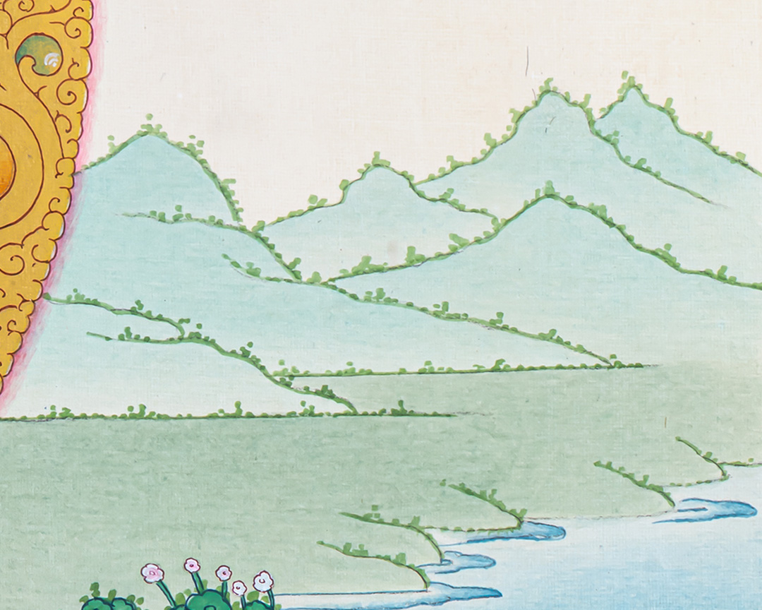 Amitabha Buddha with Chenrezig and Guru Rinpoche I High Quality Glicee Canvas Print