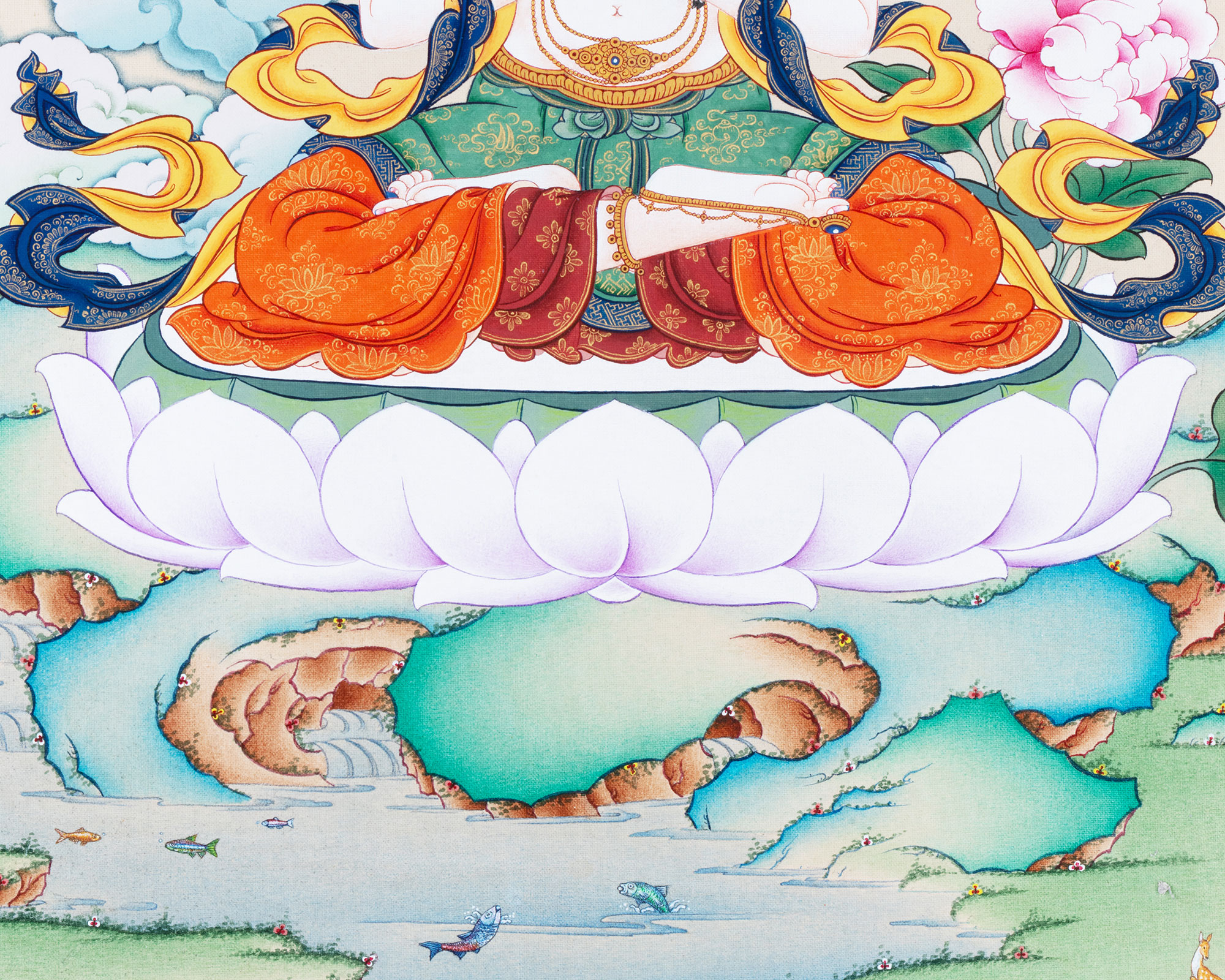 P.S. All thankas are painted taking references from Buddhist books following the correct iconography and by master artists, making it authentic traditional handmade Tibetan art. The subtle facial expression is one factor to distinguish the real effort put into creating this masterpiece.