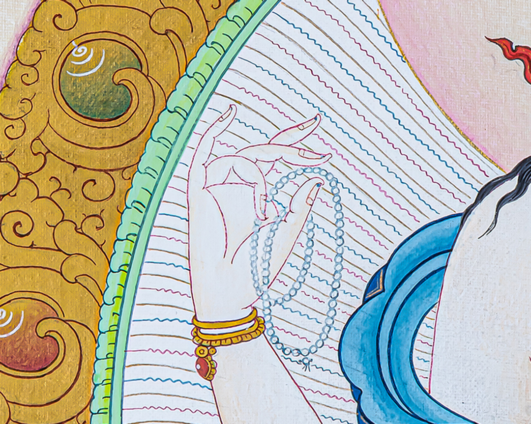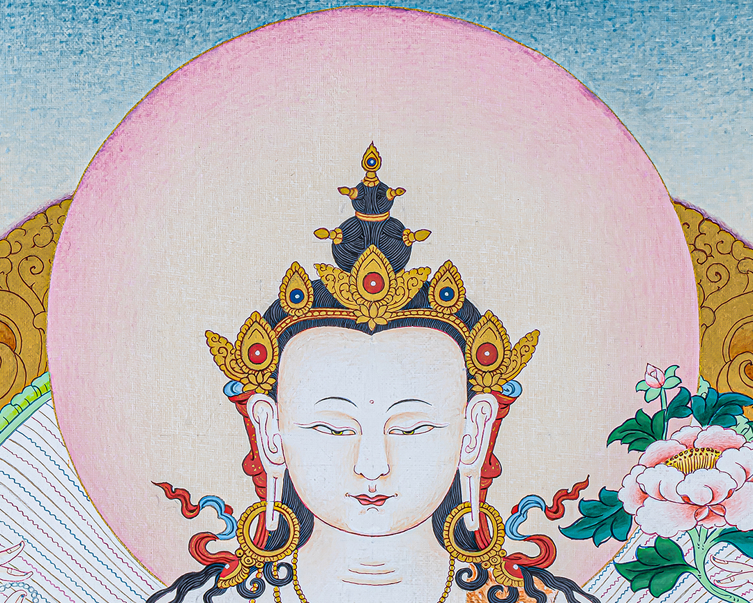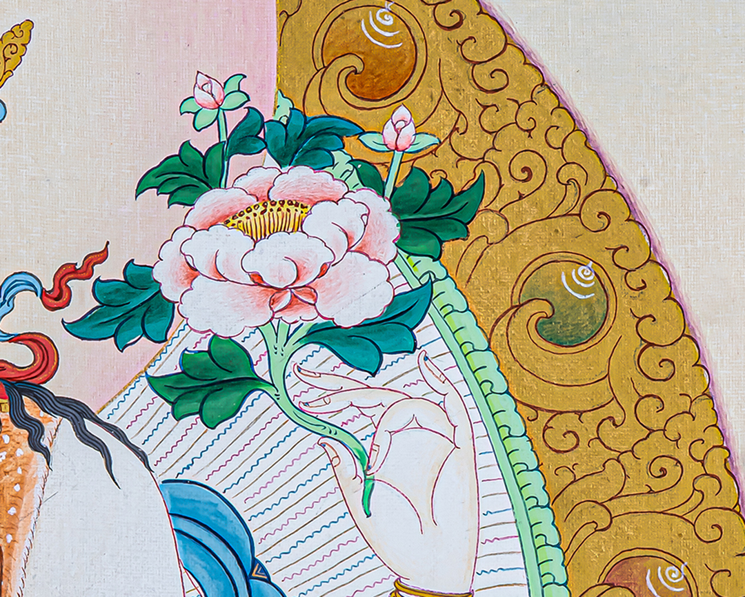 P.S. All thankas are painted taking references from Buddhist books following the correct iconography and by master artists, making it authentic traditional handmade Tibetan art. The subtle facial expression is one factor to distinguish the real effort put into creating this masterpiece.