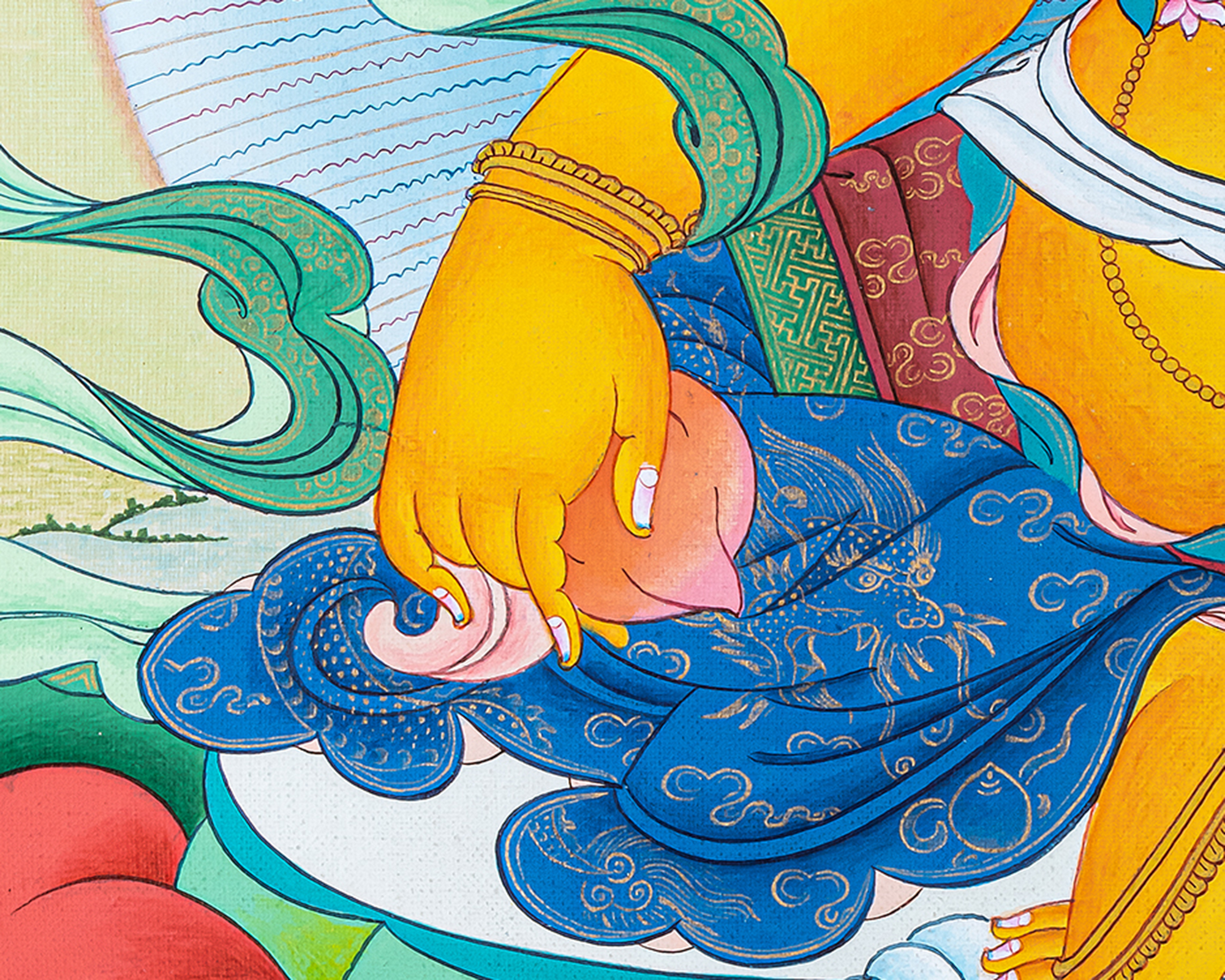 P.S. All thankas are painted taking references from Buddhist books following the correct iconography and by master artists, making it authentic traditional handmade Tibetan art. The subtle facial expression is one factor to distinguish the real effort put into creating this masterpiece.