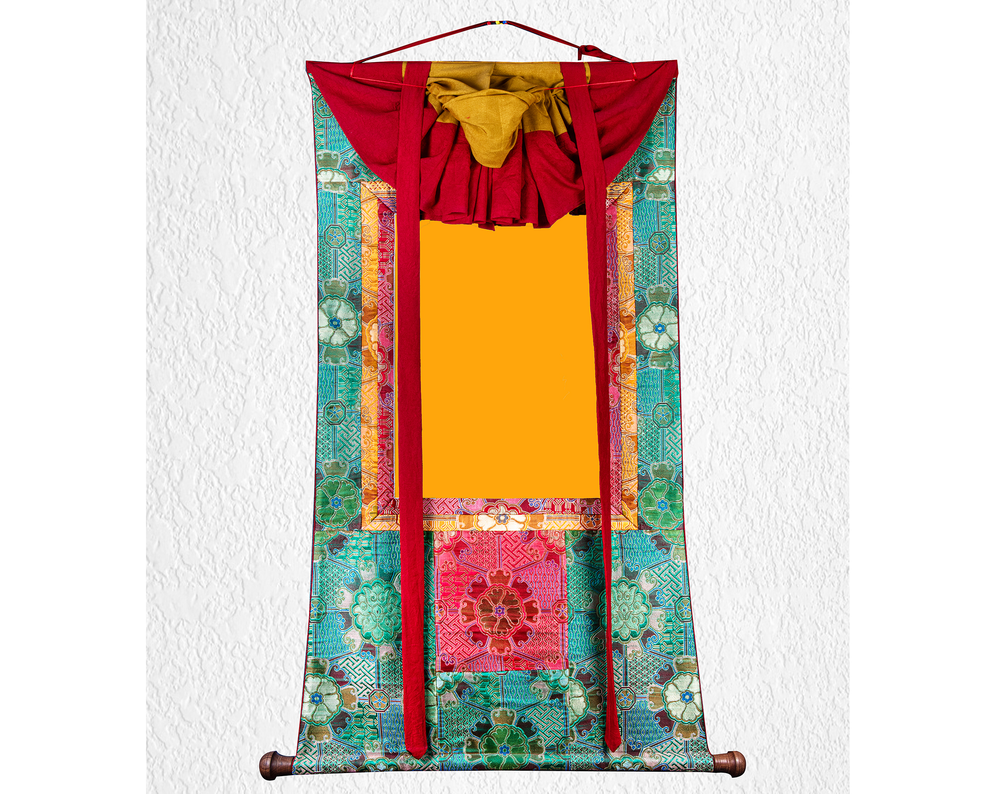 Thisgreen premium silk brocadeis made from high-quality fabric with beautiful traditional patterns, ideal for Thangka mounting, framing sacred artworks, and decorating Buddhist altars. The green color represents harmony, healing, and balance, bringing a peaceful and refreshing energy to any shrine or meditation space. With its smooth texture, rich luster, and durable weave, this premium brocade adds elegance, authenticity, and long-lasting beauty to temples, home shrines, and sacred art collections.
