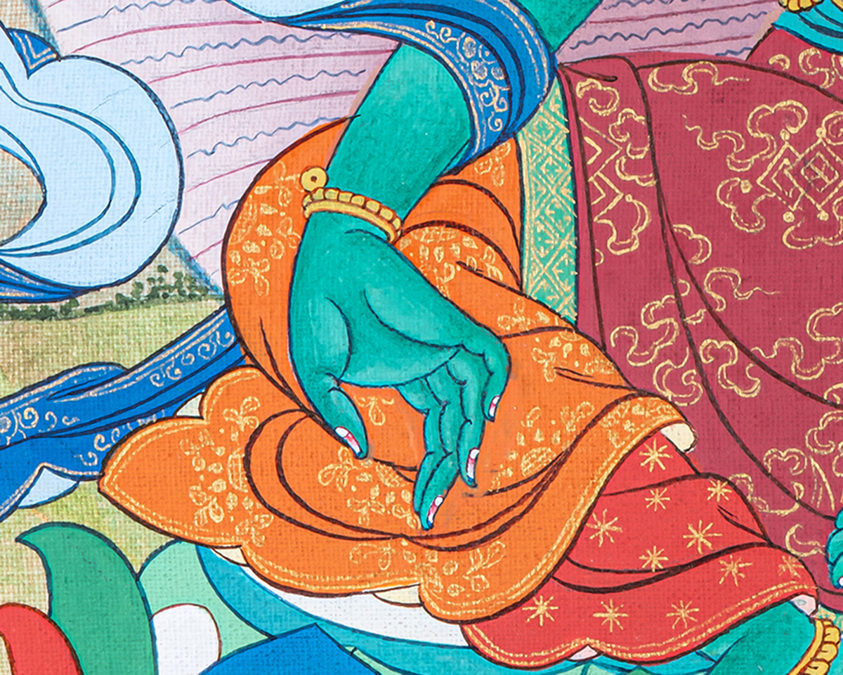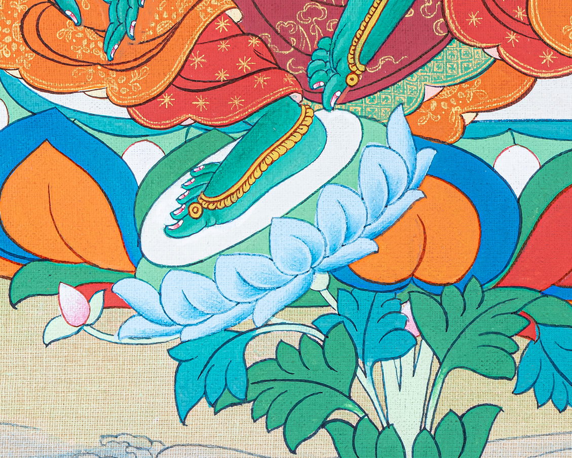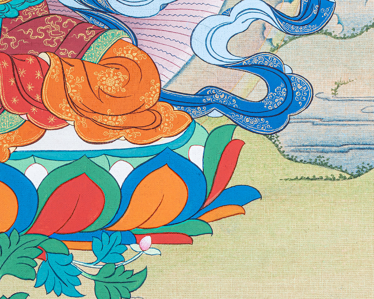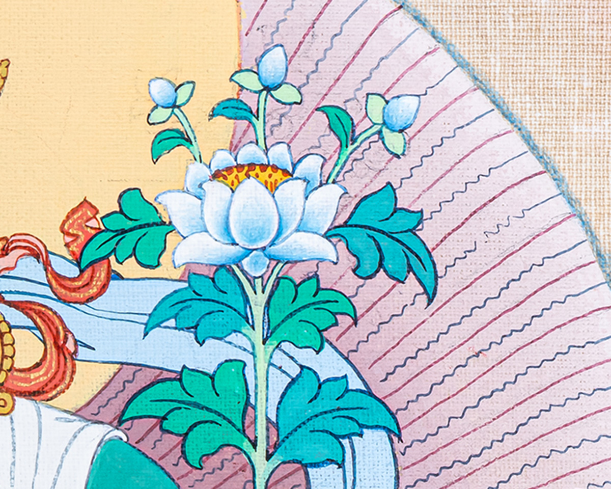 P.S. All thankas are painted taking references from Buddhist books following the correct iconography and by master artists, making it authentic traditional handmade Tibetan art. The subtle facial expression is one factor to distinguish the real effort put into creating this masterpiece.