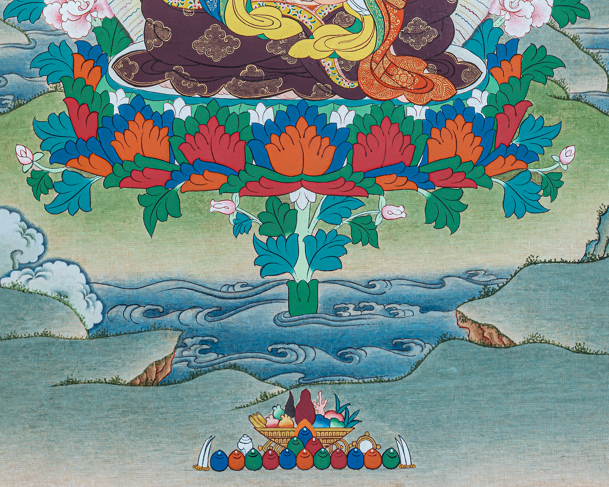 P.S. All thankas are painted taking references from Buddhist books following the correct iconography and by master artists, making it authentic traditional handmade Tibetan art. The subtle facial expression is one factor to distinguish the real effort put into creating this masterpiece.
