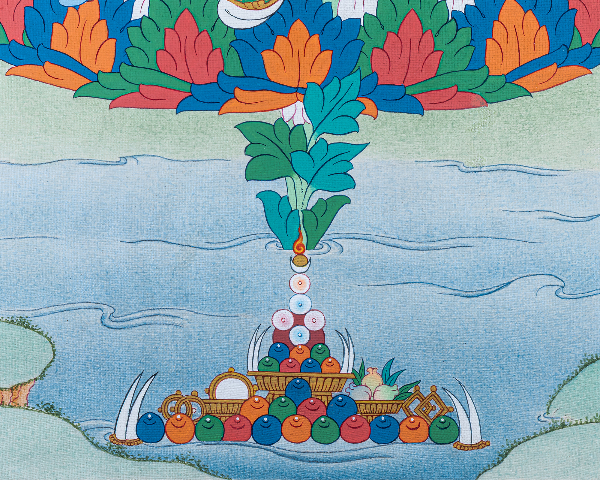 - 100% hand-painted with references from Buddhist books, iconography, and master artists.