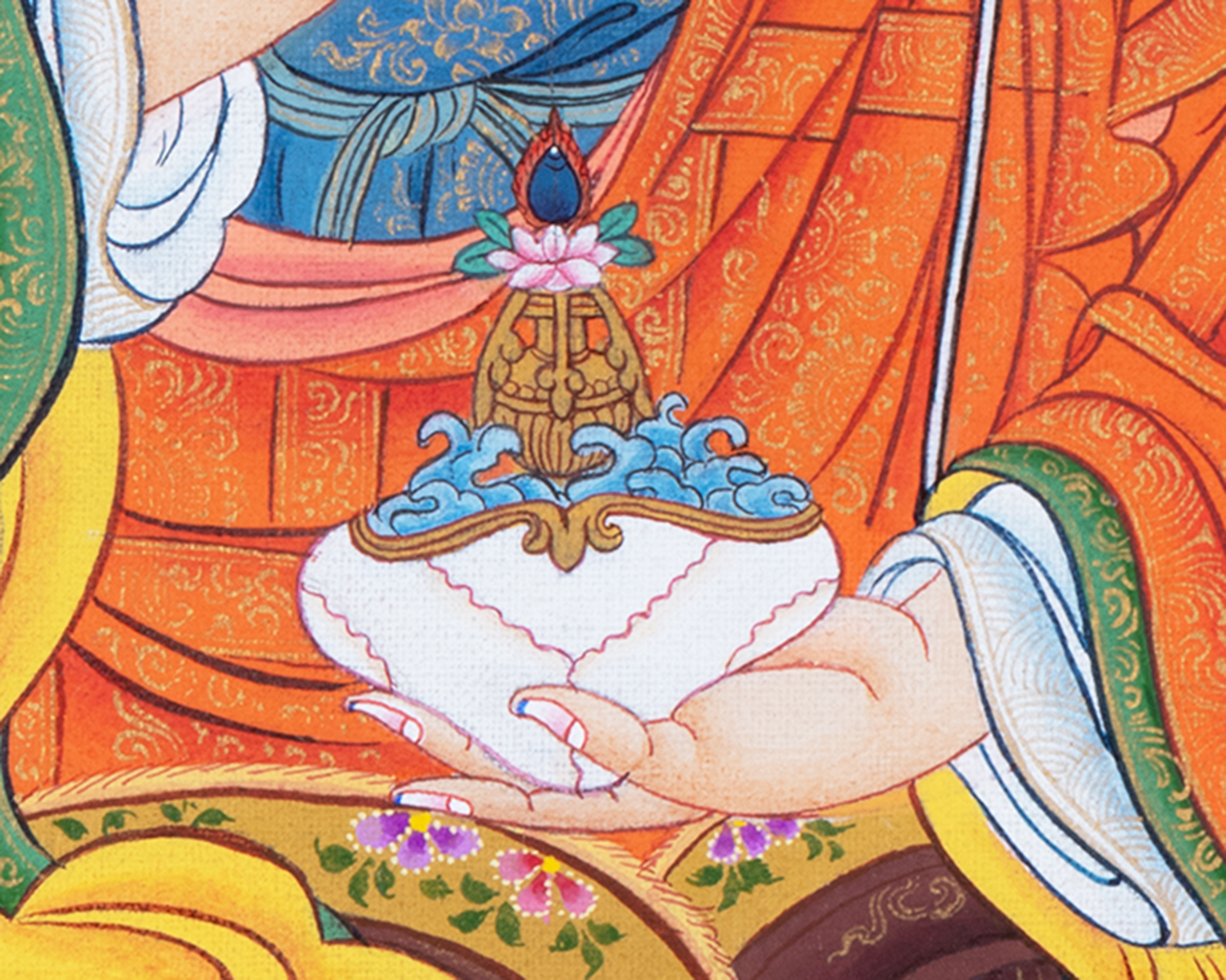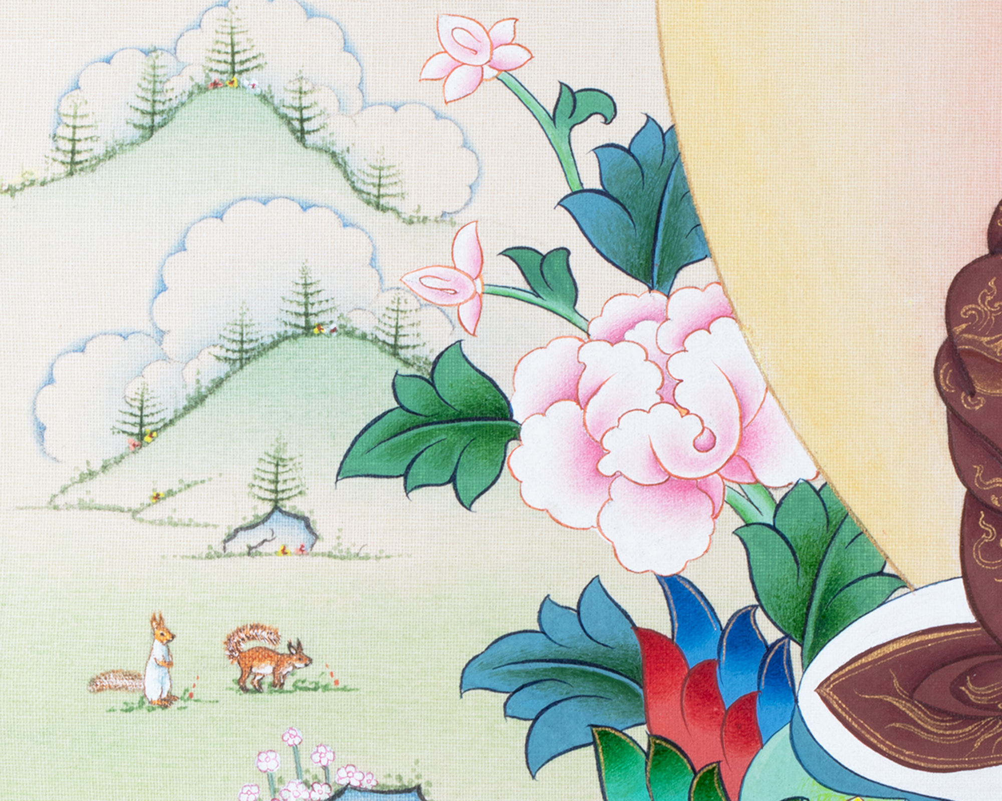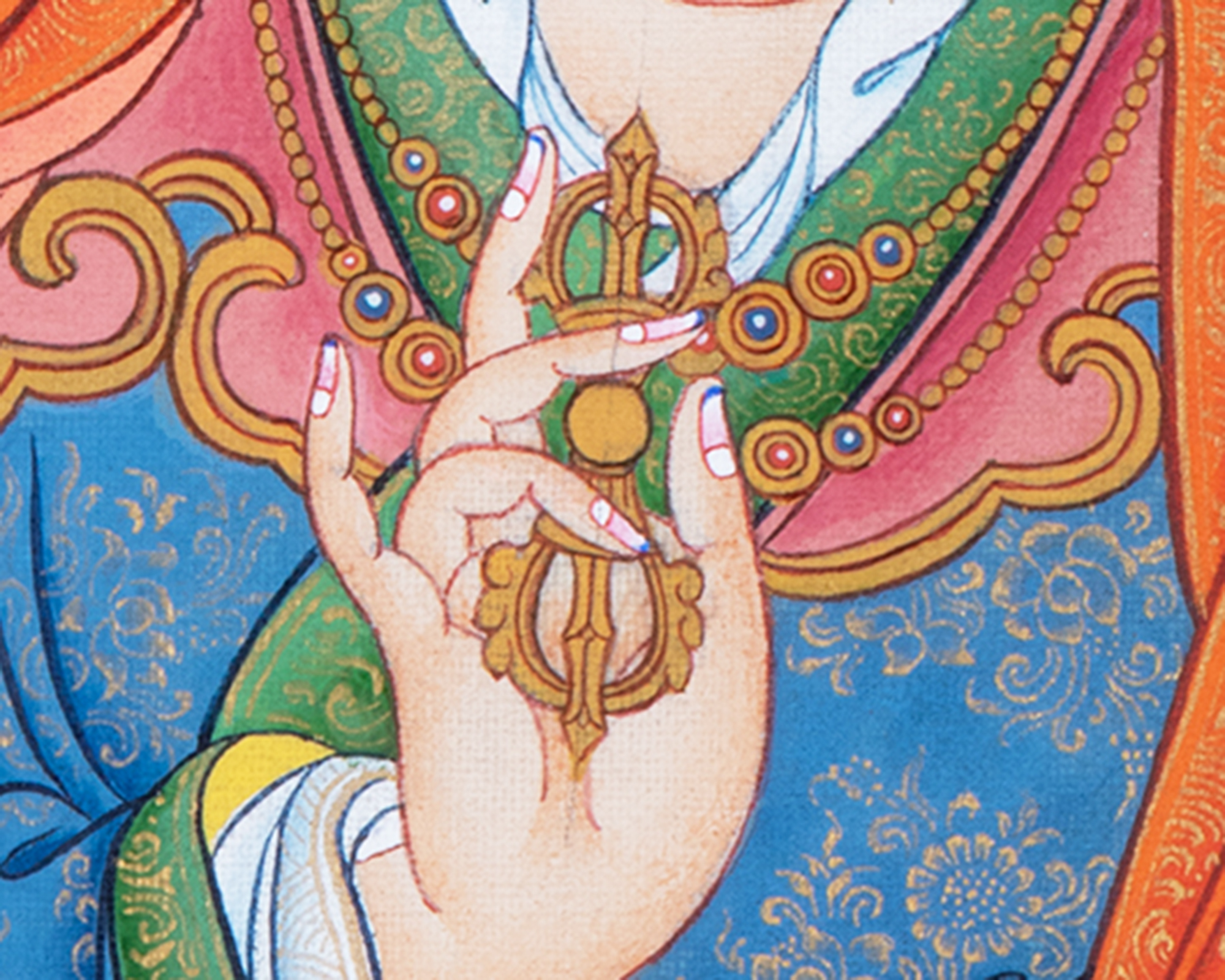 P.S. All thankas are painted taking references from Buddhist books following the correct iconography and by master artists, making it authentic traditional handmade Tibetan art. The subtle facial expression is one factor to distinguish the real effort put into creating this masterpiece.