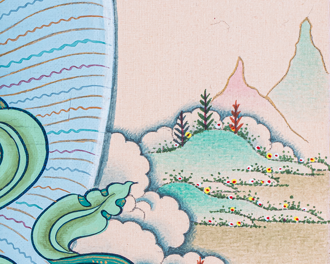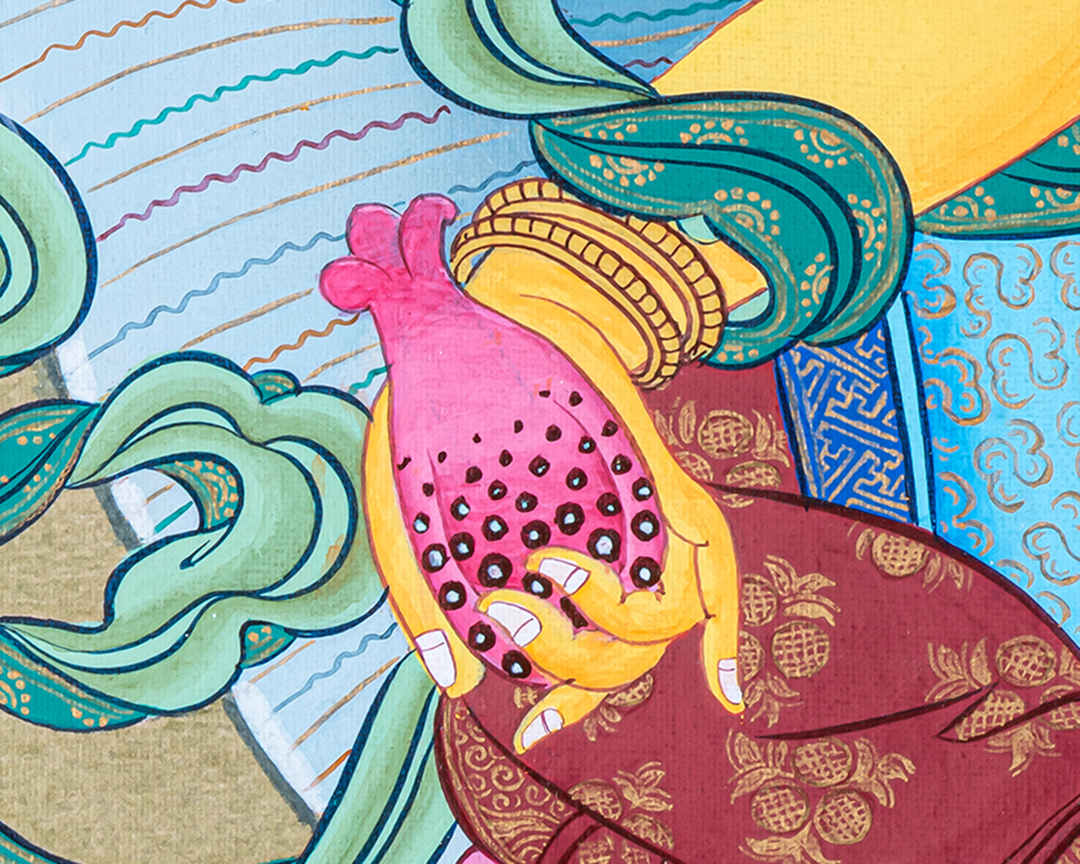 P.S. All thankas are painted taking references from Buddhist books following the correct iconography and by master artists, making it authentic traditional handmade Tibetan art. The subtle facial expression is one factor to distinguish the real effort put to create this masterpiece.