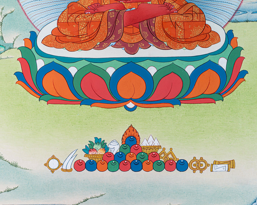 Amitabha Buddha holds a central place in Pure Land Buddhism. Through the recitation of his name and meditation upon his sacred image, practitioners aspire to be reborn in his Western Pure Land, Sukhavati, where the path toward enlightenment unfolds without obstacles. Thangka paintings serve as essential aids in this devotional and contemplative practice, helping practitioners cultivate compassion, wisdom, and serenity.