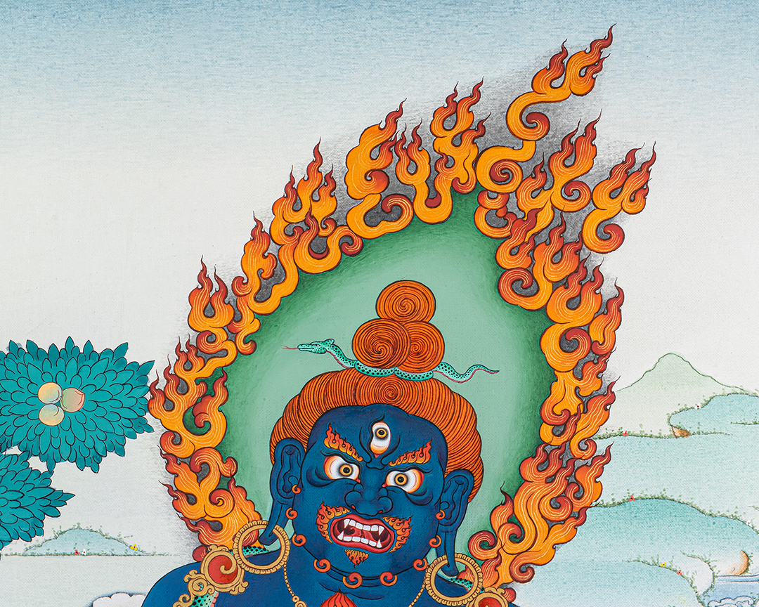 This thangka is especially revered for practices related to abundance, generosity, and protection. Practitioners believe that sincere devotion to Black Dzambala helps overcome financial hardship, strengthens generosity, and attracts positive conditions for both worldly and spiritual success.