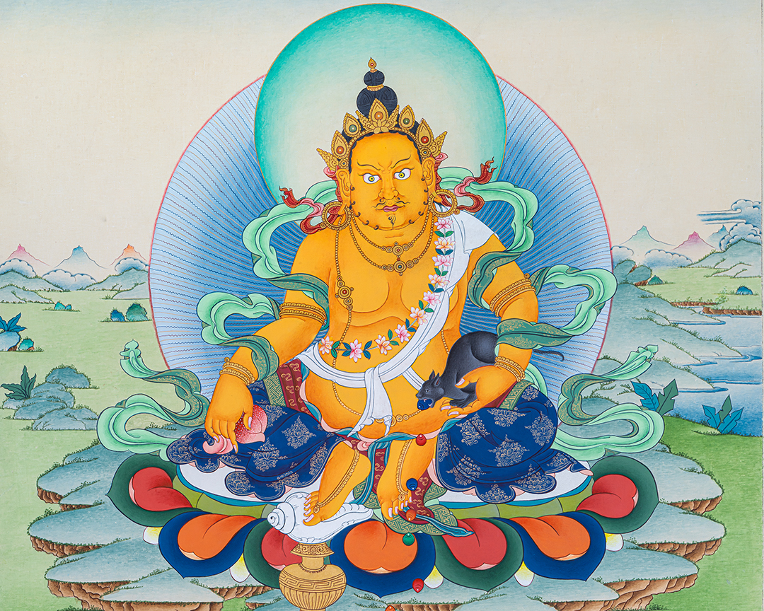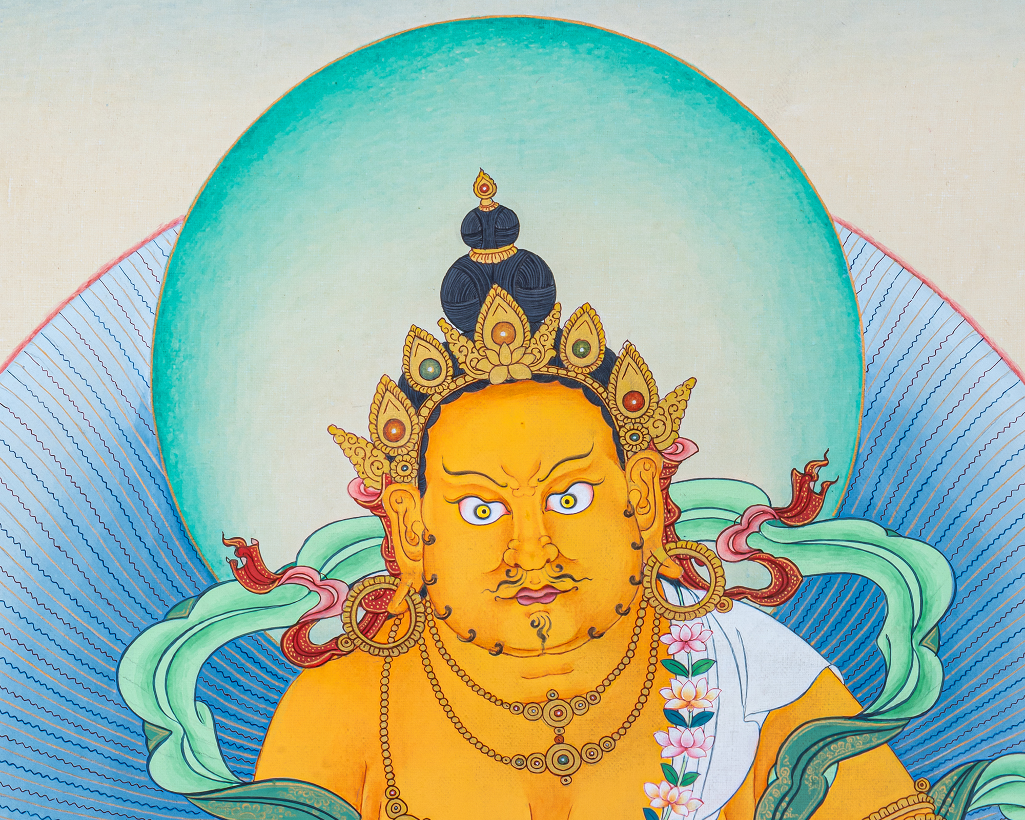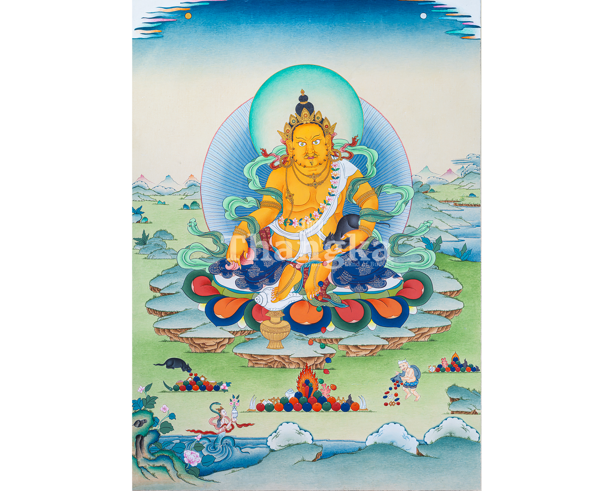 Hand-painted using traditional Tibetan techniques and vibrant pigments, this thangka serves as a powerful tool for meditation, altar offerings, and home décor. It is believed to remove financial obstacles, attract wealth, and bring good fortune into the lives of devotees. Ideal for personal practice, gifting, or as a sacred centerpiece, this thangka merges artistry with spiritual energy.