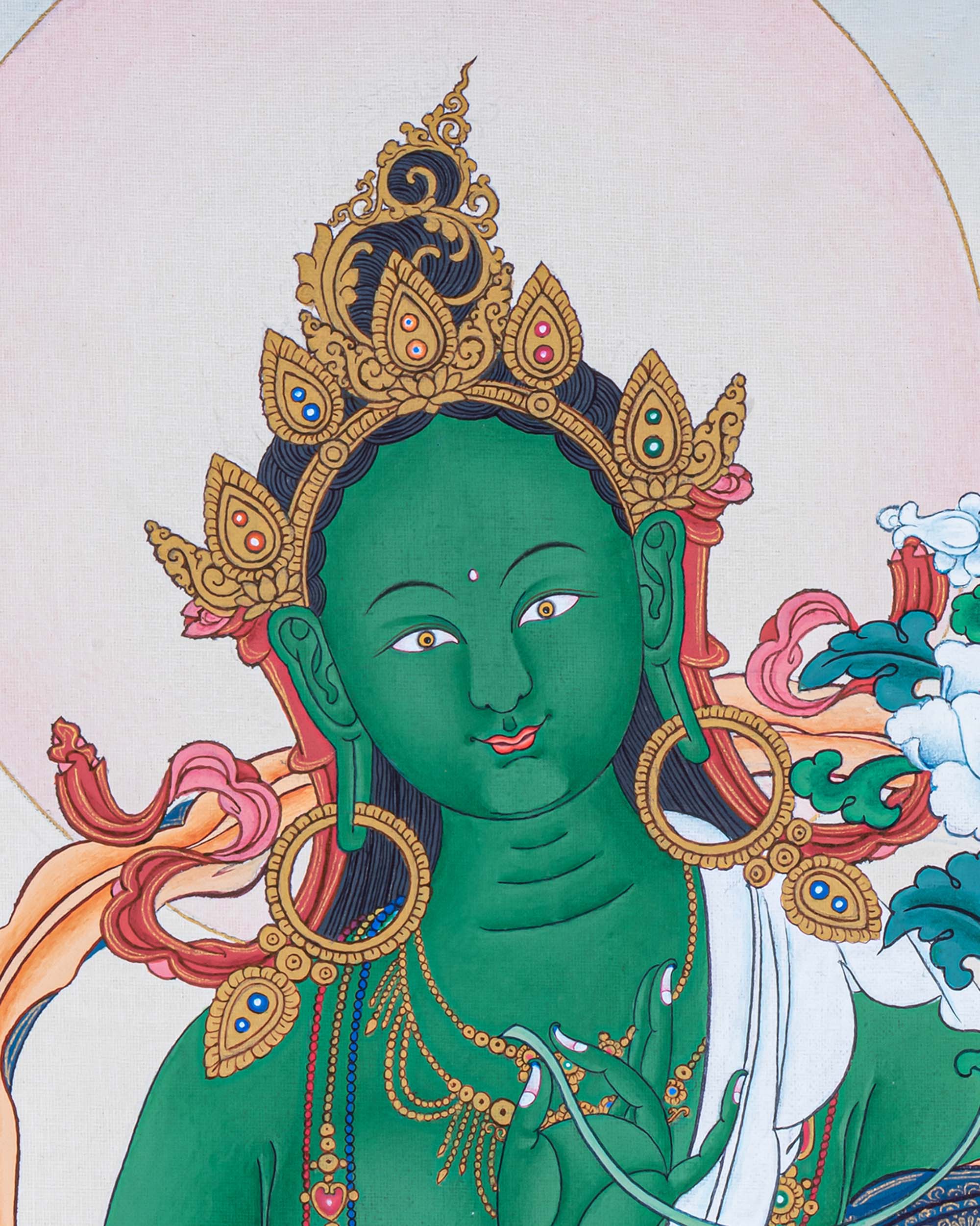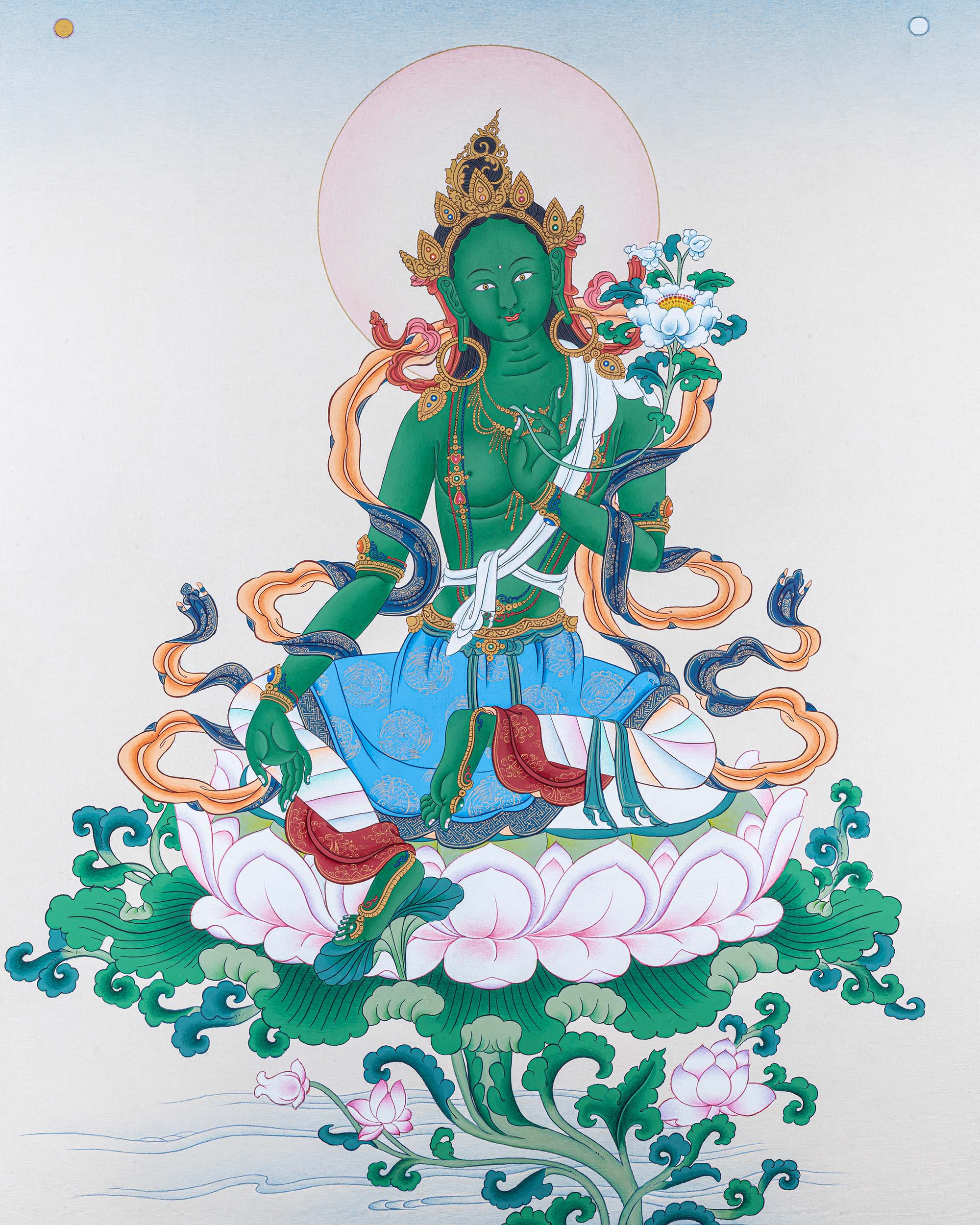 Green Tara Hand Painted Thangka I Mother of Liberation I Traditional Art