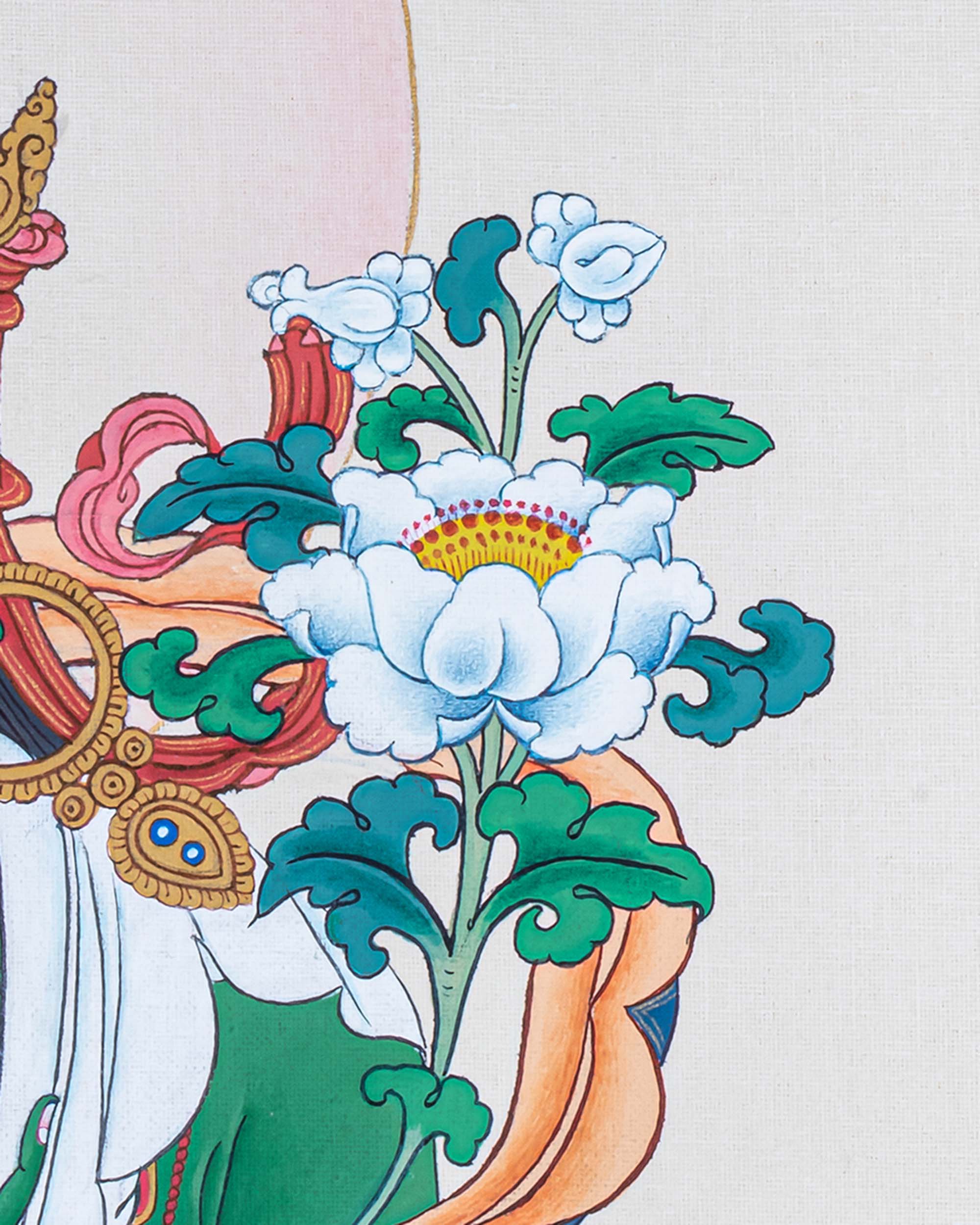 P.S. All thankas are painted taking references from Buddhist books following the correct iconography and by master artists, making it authentic traditional handmade Tibetan art. The subtle facial expression is one factor to distinguish the real effort put into creating this masterpiece.