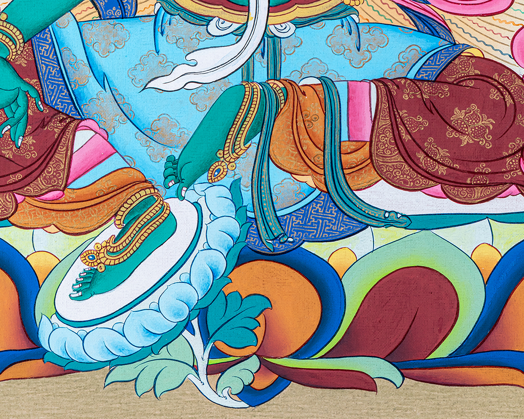 P.S. All thankas are painted taking references from Buddhist books following the correct iconography and by master artists, making it authentic traditional handmade Tibetan art. The subtle facial expression is one factor to distinguish the real effort put into creating this masterpiece.