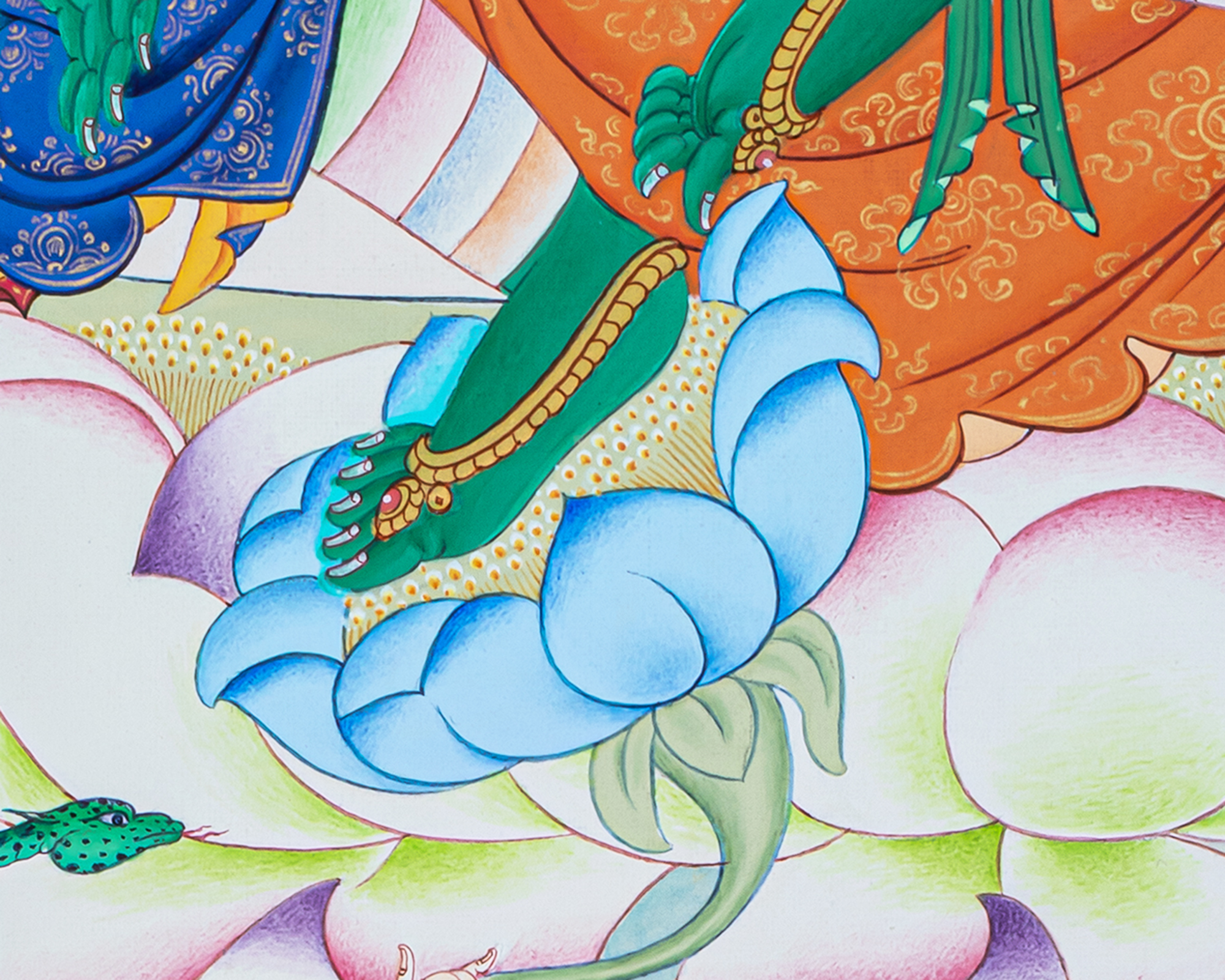 P.S. All thankas are painted taking references from Buddhist books following the correct iconography and by master artists, making it authentic traditional handmade Tibetan art. The subtle facial expression is one factor to distinguish the real effort put into creating this masterpiece.