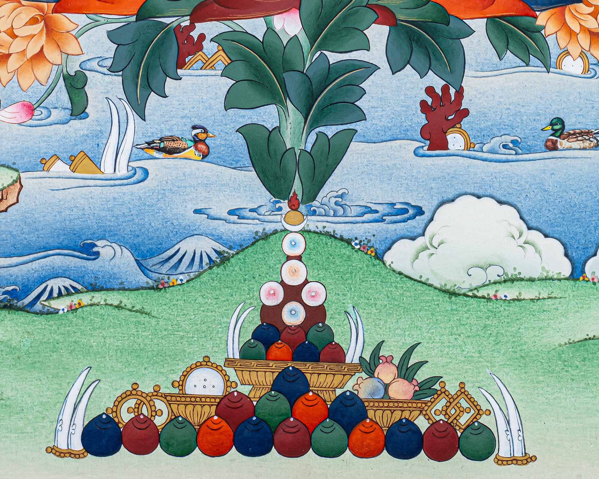 - 100% hand-painted with references from Buddhist books, iconography, and master artists.