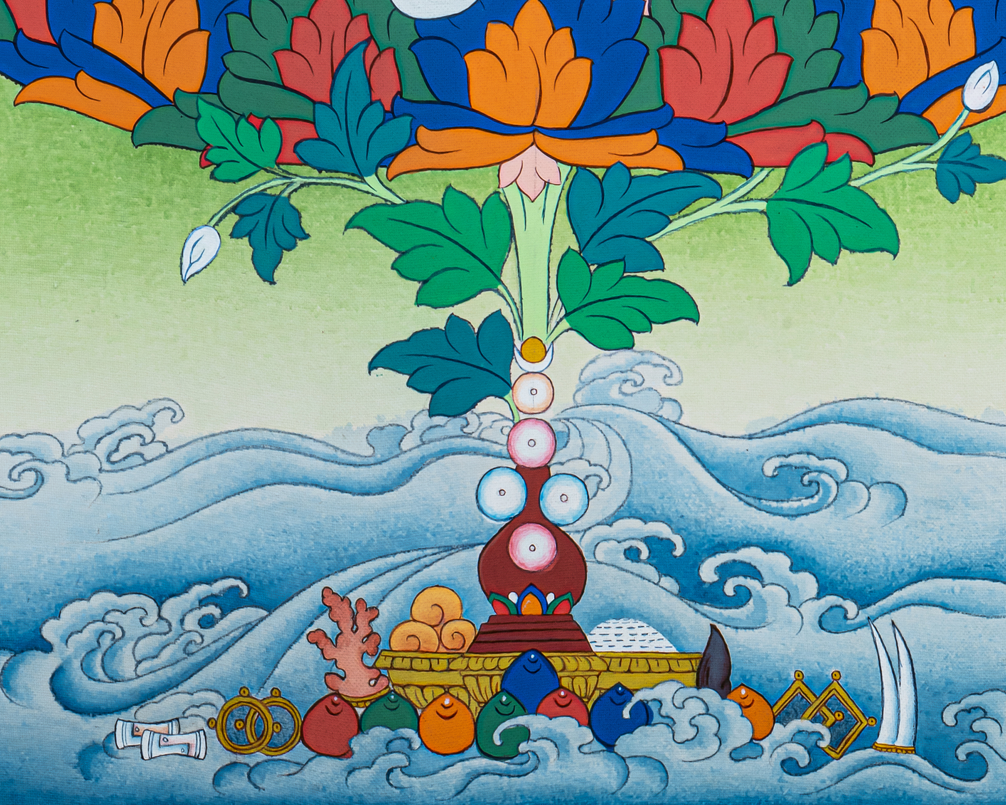 - 100% hand-painted with references from Buddhist books, iconography, and master artists.