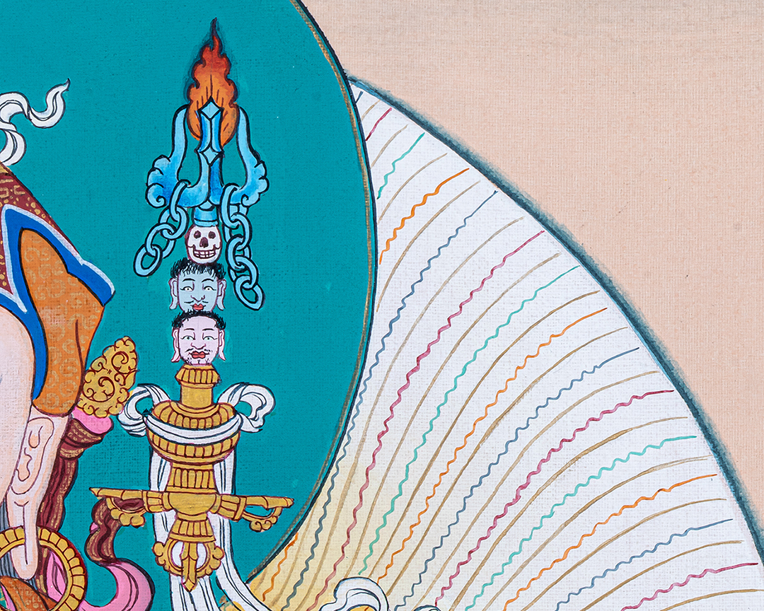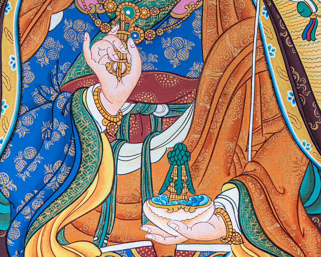 P.S. All thankas are painted taking references from Buddhist books following the correct iconography and by master artists, making it authentic traditional handmade Tibetan art. The subtle facial expression is one factor to distinguish the real effort put into creating this masterpiece.