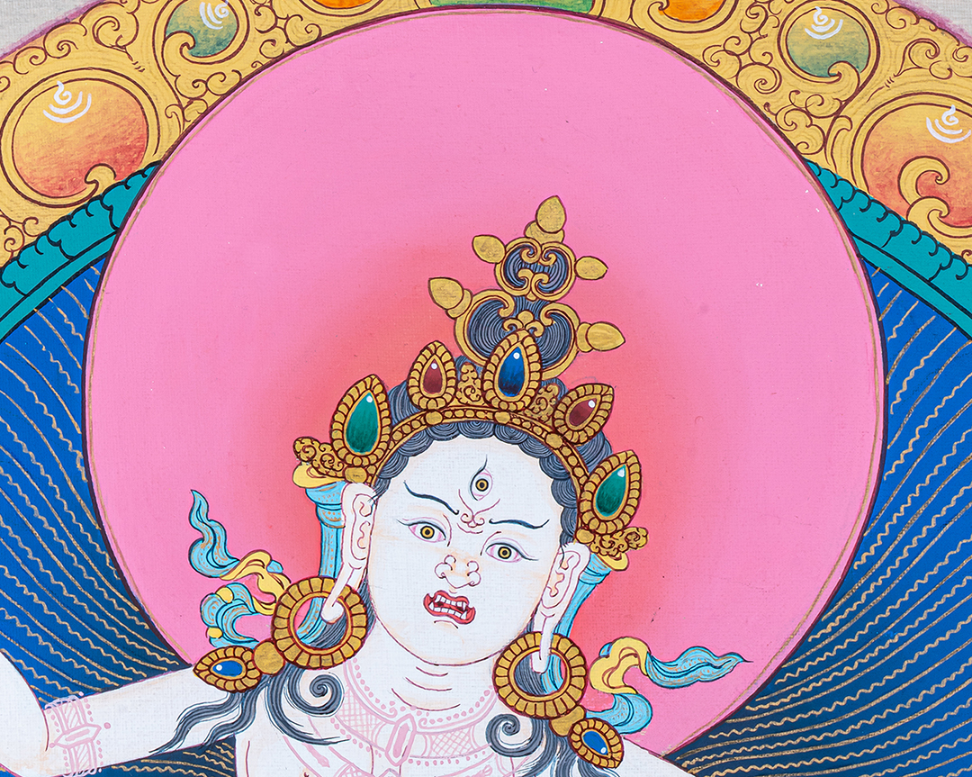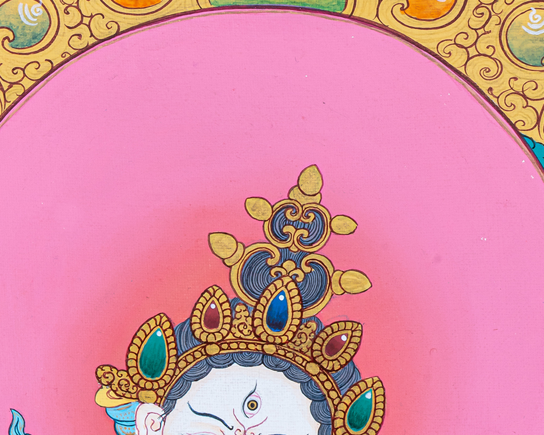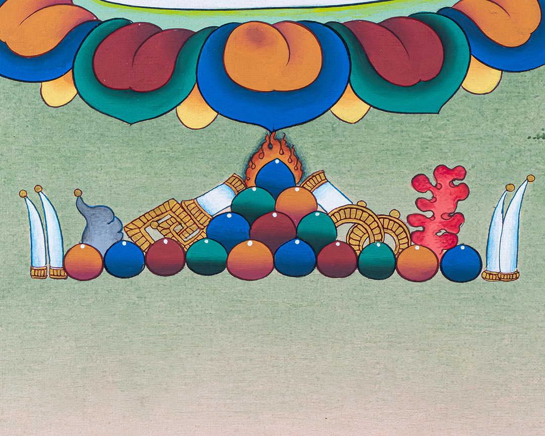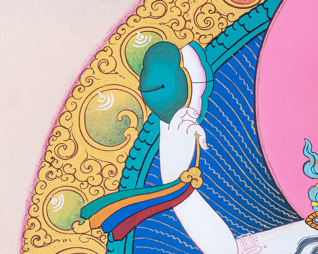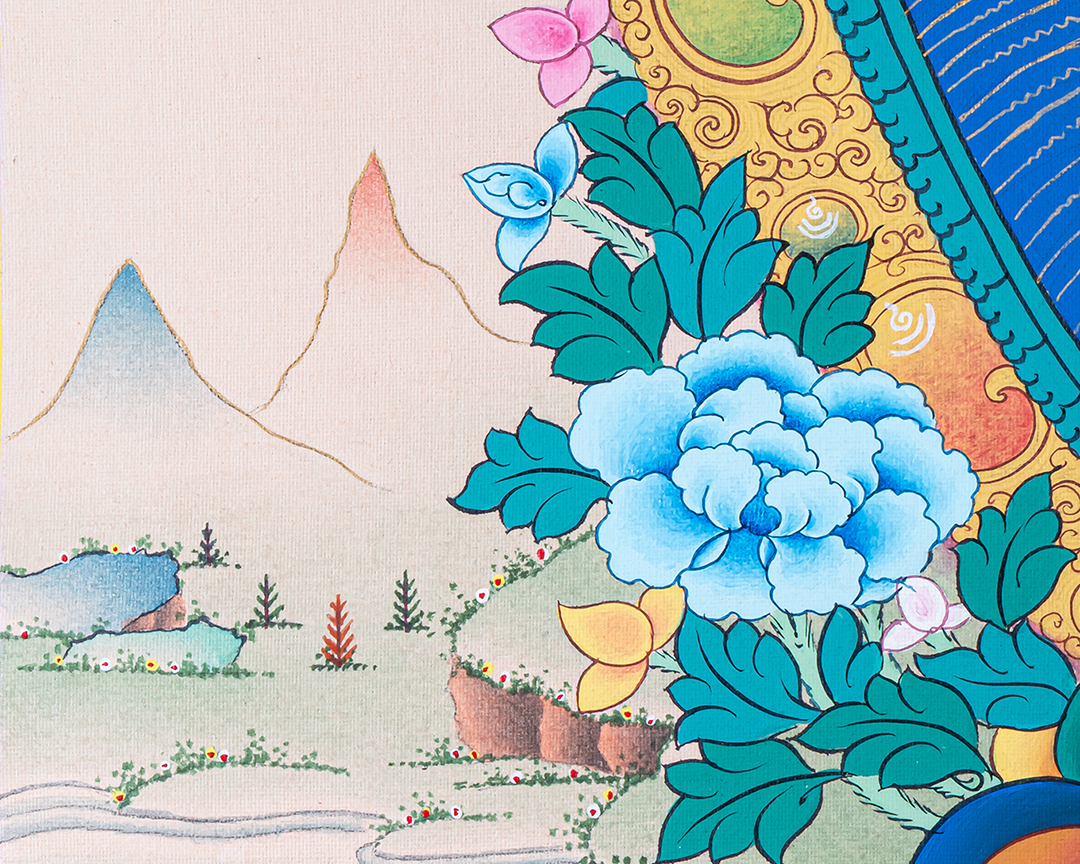 P.S. All thankas are painted taking references from Buddhist books following the correct iconography and by master artists, making it authentic traditional handmade Tibetan art. The subtle facial expression is one factor to distinguish the real effort put to create this masterpiece.