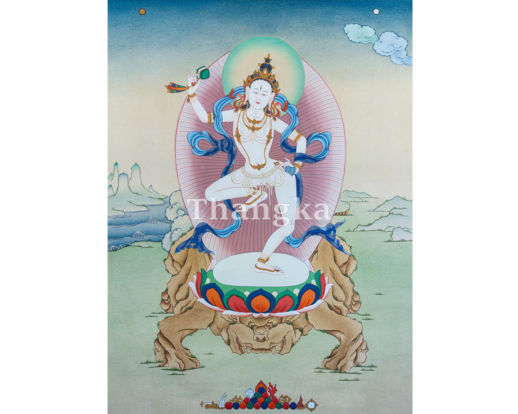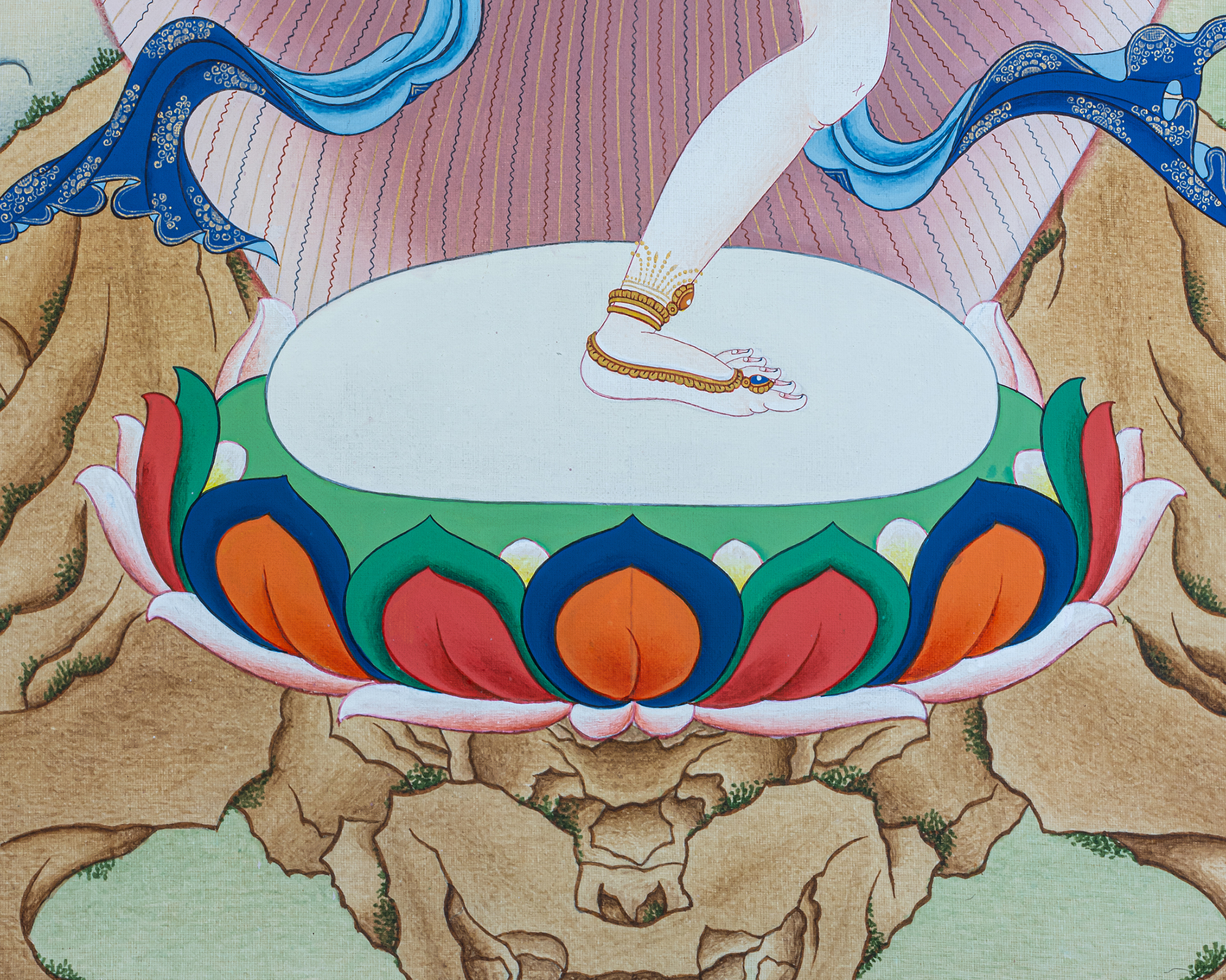 P.S. All thankas are painted taking references from Buddhist books following the correct iconography and by master artists, making it authentic traditional handmade Tibetan art. The subtle facial expression is one factor to distinguish the real effort put to create this masterpiece.