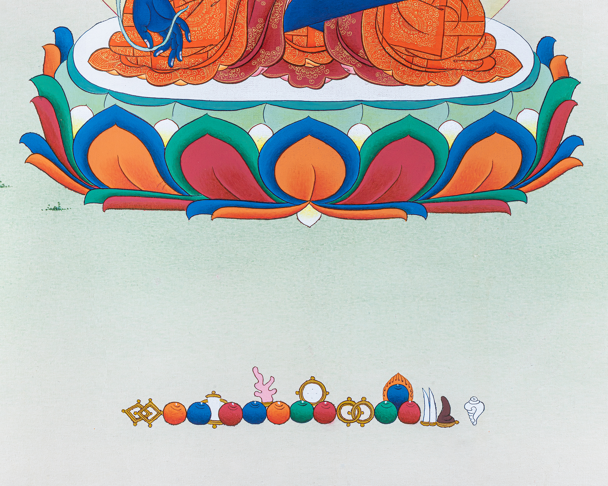 P.S. All thankas are painted taking references from Buddhist books following the correct iconography and by master artists, making it authentic traditional handmade Tibetan art. The subtle facial expression is one factor to distinguish the real effort put into creating this masterpiece.