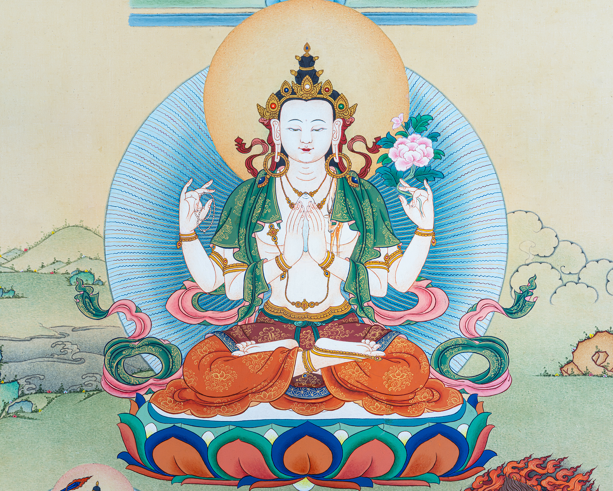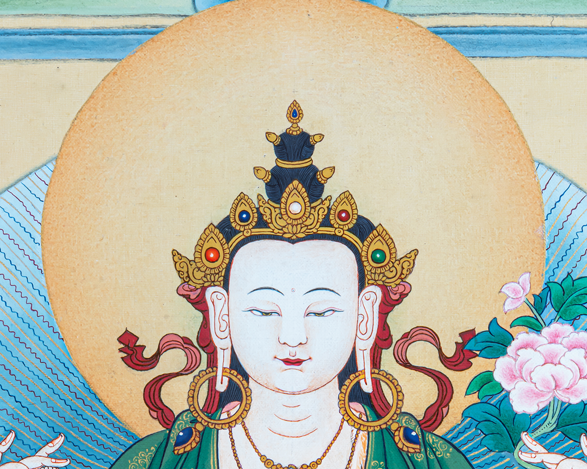 - 100% hand-painted with references from Buddhist books, iconography, and master artists.