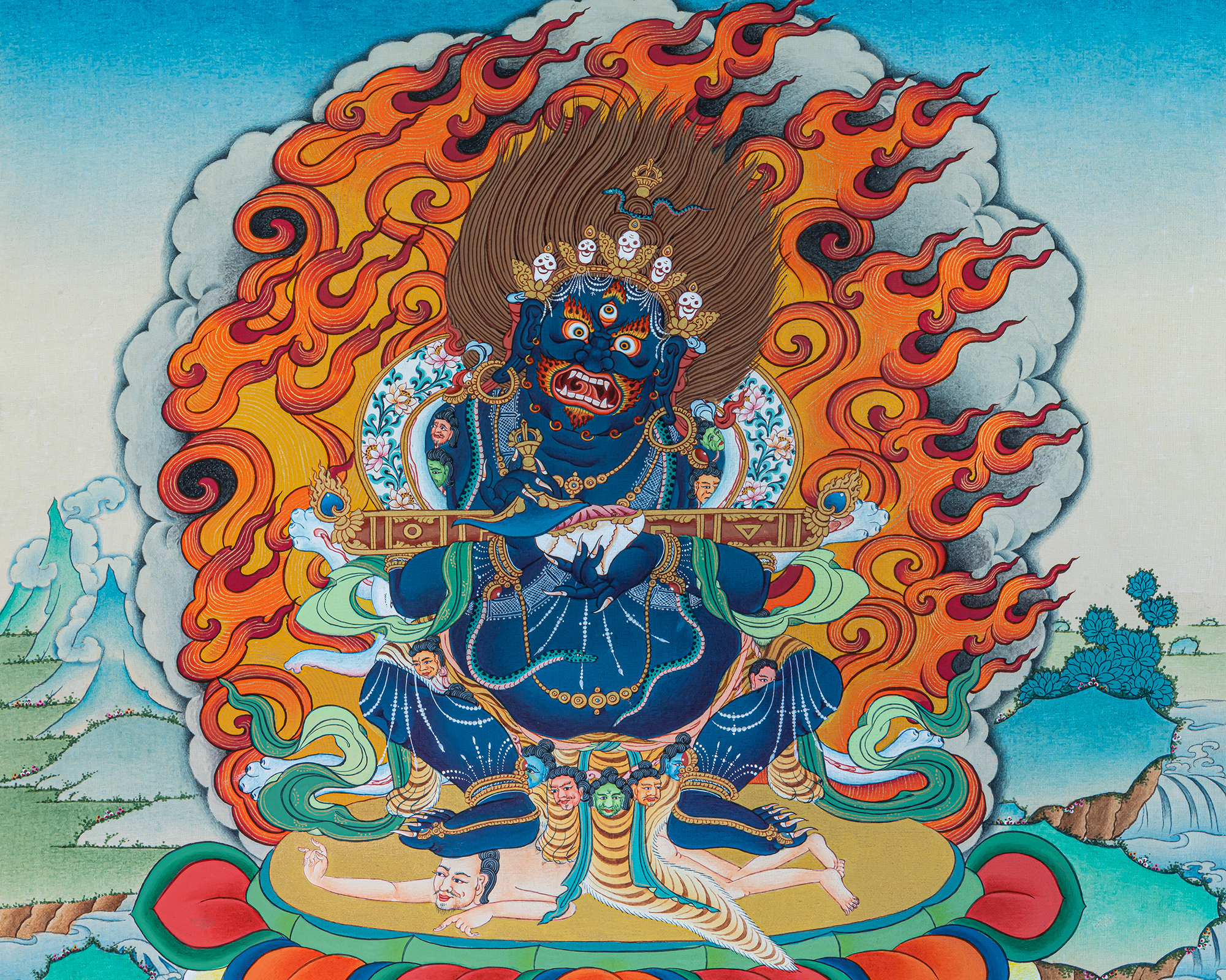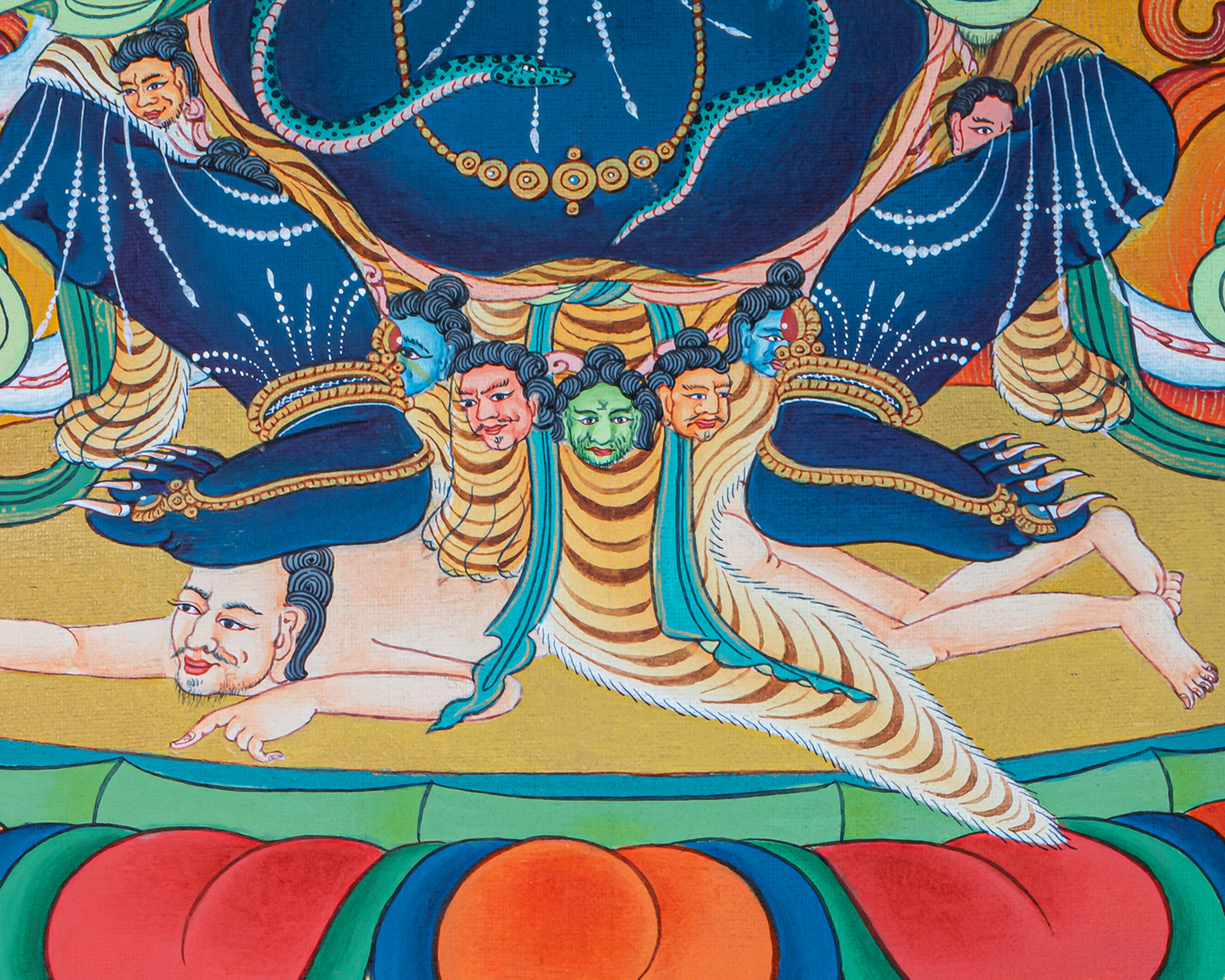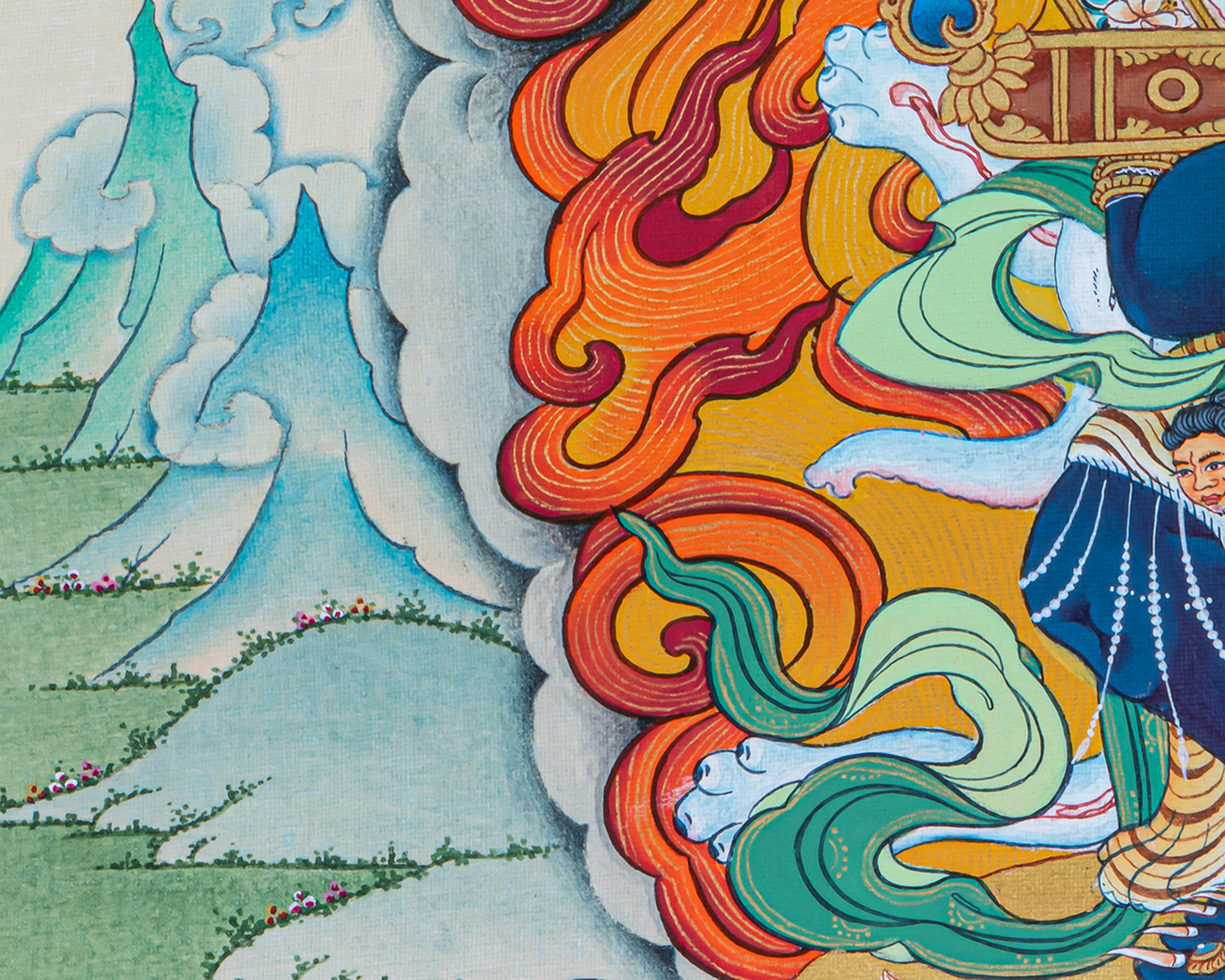 P.S. All thankas are painted taking references from Buddhist books following the correct iconography and by master artists, making it authentic traditional handmade Tibetan art. The subtle facial expression is one factor to distinguish the real effort put into creating this masterpiece.