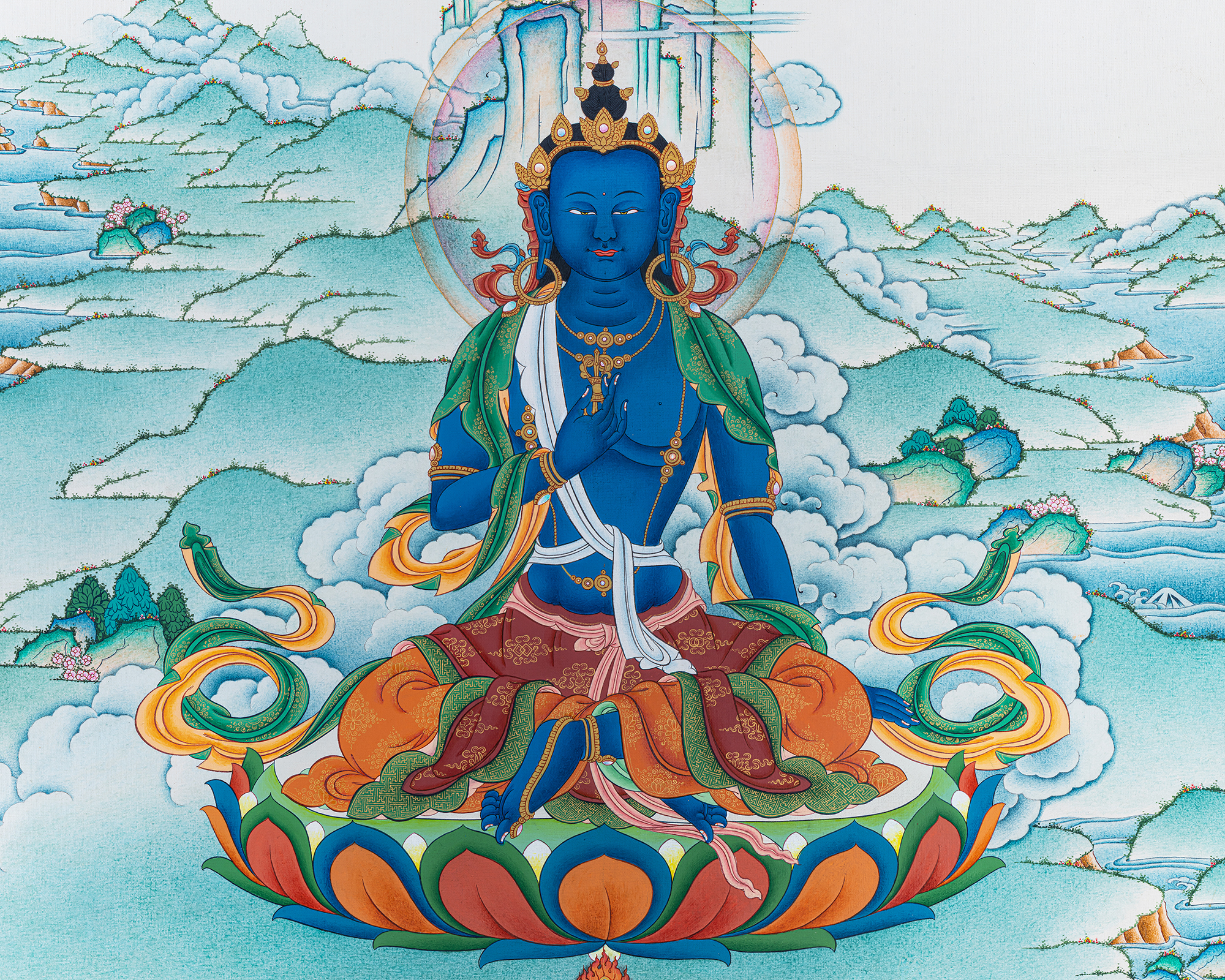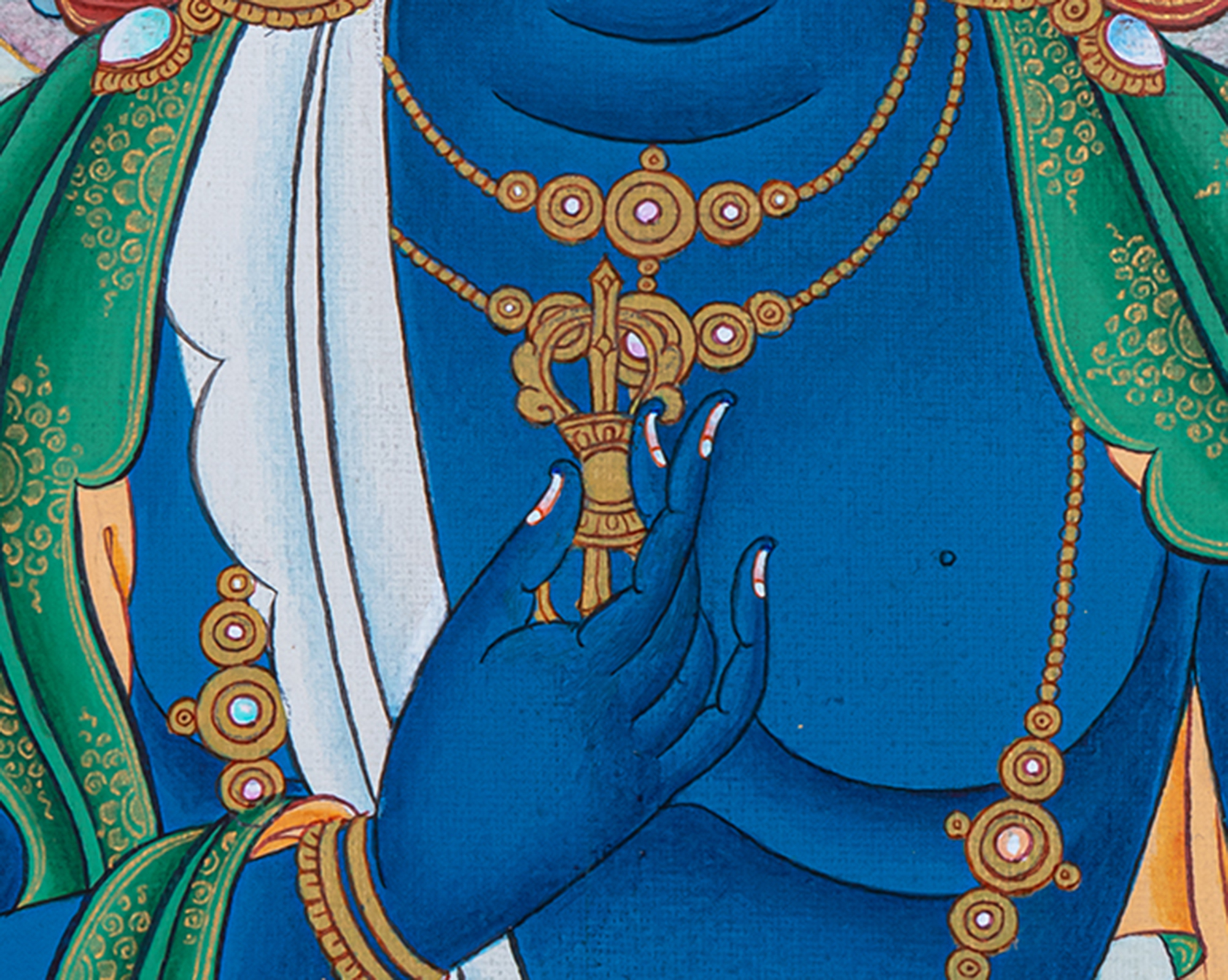 Hand-painted in the traditional Himalayan thangka style, this artwork is ideal for meditation rooms, protector shrines, monasteries, and sacred art collections. Vajrapani is especially revered for granting strength, courage, and protection on the spiritual path. This thangka serves both as a powerful devotional image and a commanding piece of sacred Buddhist art, bringing confidence, clarity, and protective energy into your space.