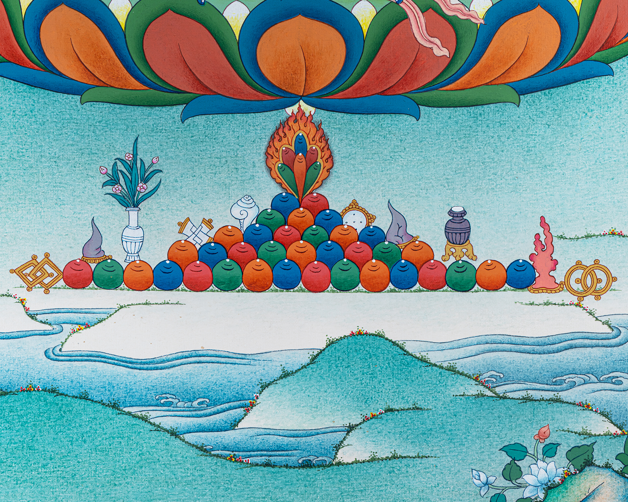 - 100% hand-painted with references from Buddhist books, iconography, and master artists.