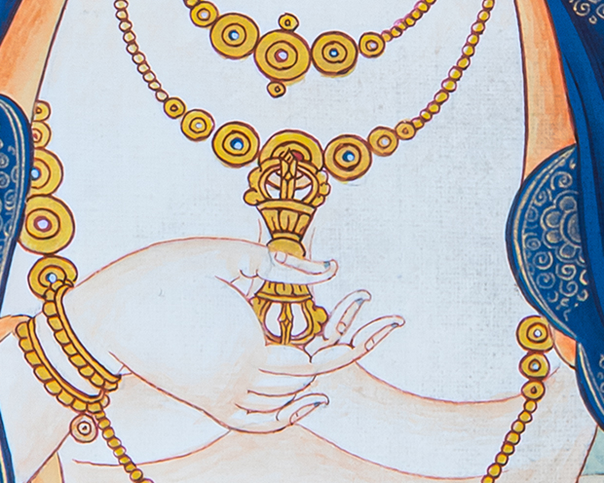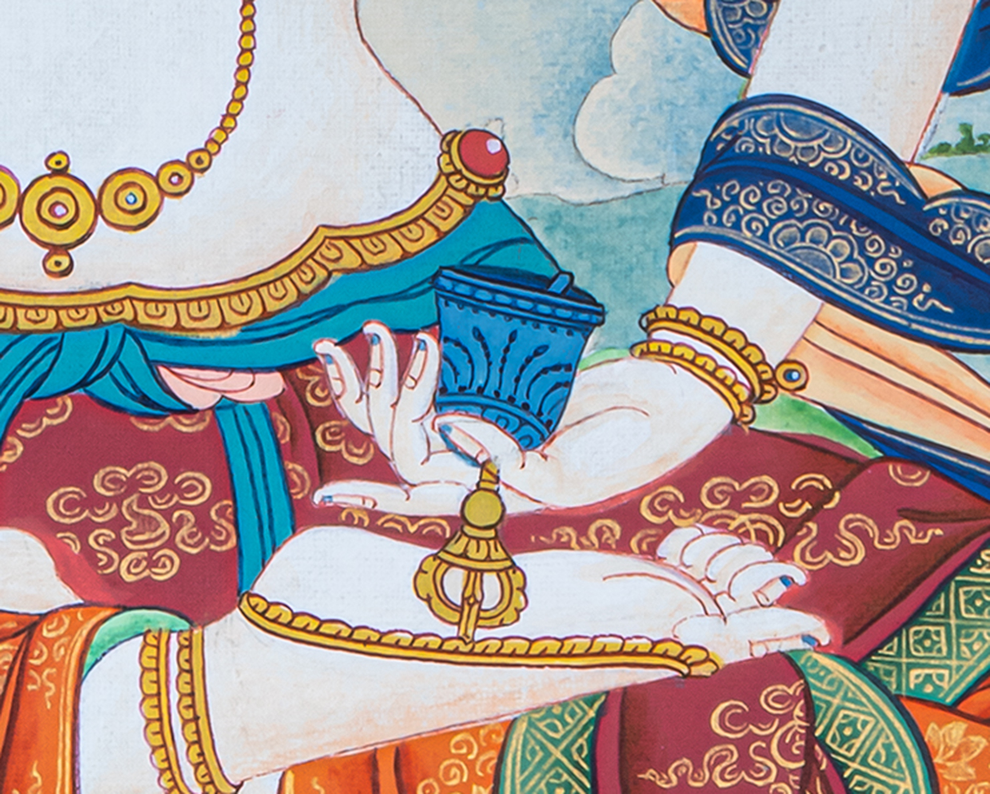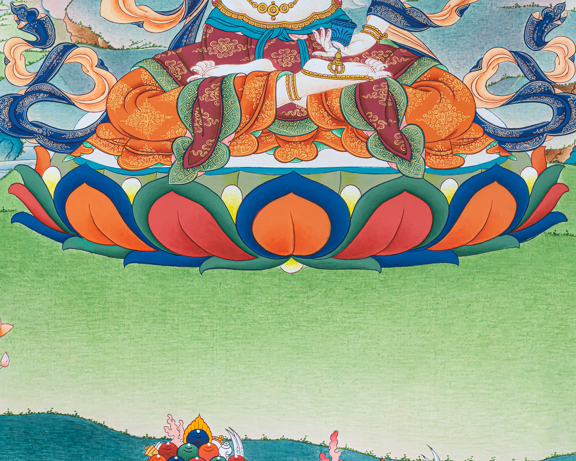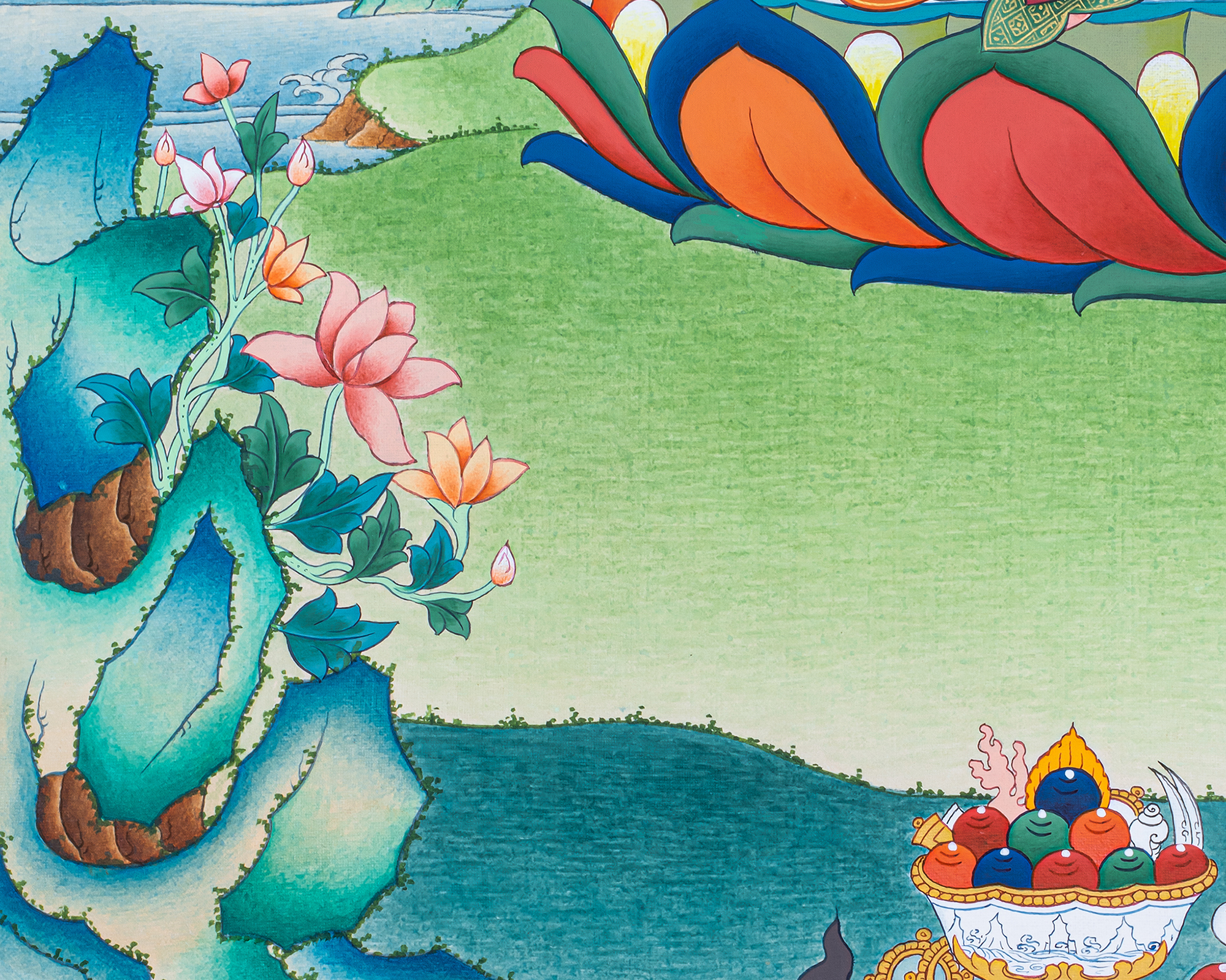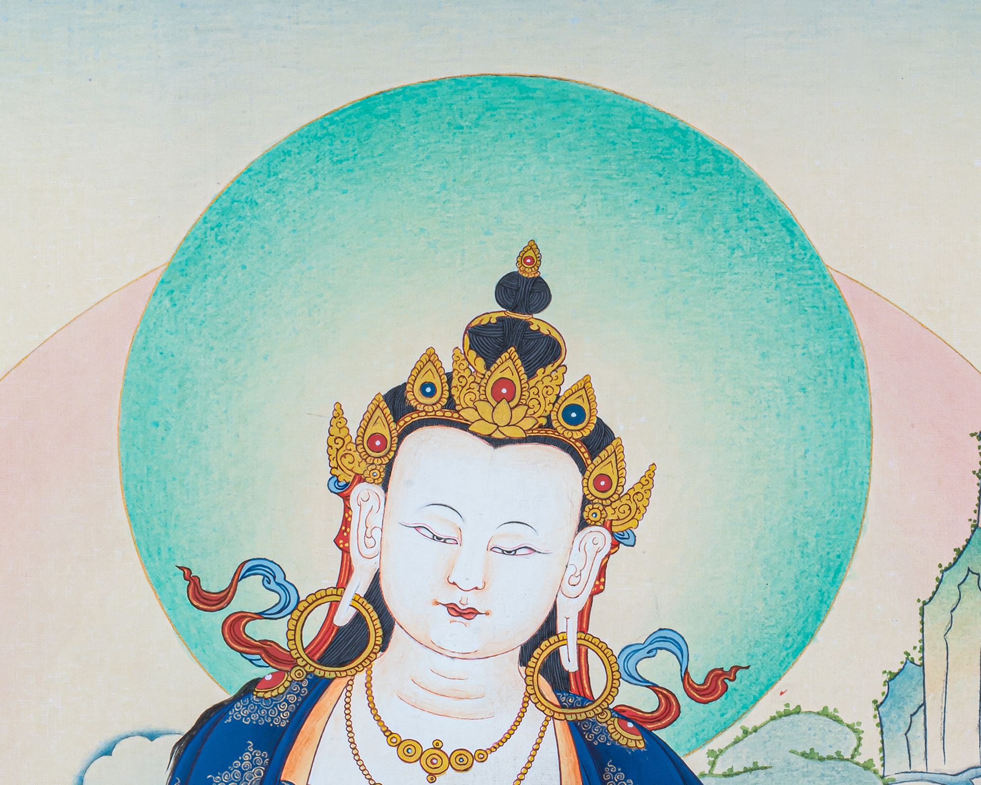 P.S. All thankas are painted taking references from Buddhist books following the correct iconography and by master artists, making it authentic traditional handmade Tibetan art. The subtle facial expression is one factor to distinguish the real effort put into creating this masterpiece.