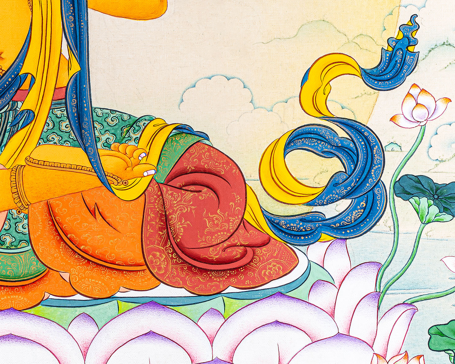 This hand-painted Tibetan Thangka is carefully crafted using traditional mineral pigments, fine brushwork, and gold detailing, preserving the sacred heritage of authentic Himalayan Buddhist art. Such original Tibetan Thangka artwork is not only a masterpiece of sacred Buddhist Thangka art but also a powerful support for meditation and spiritual practice.
