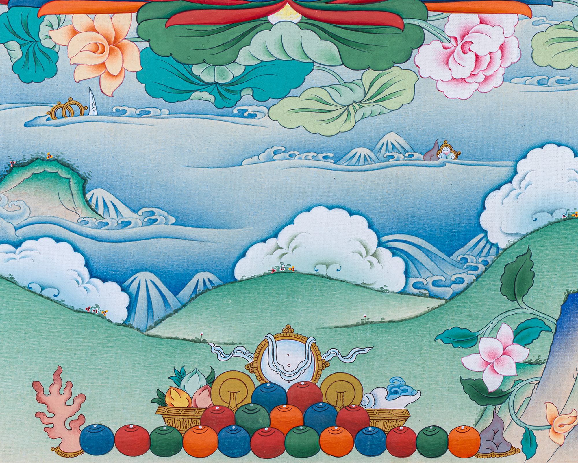 - 100% hand-painted with references from Buddhist books, iconography, and master artists.