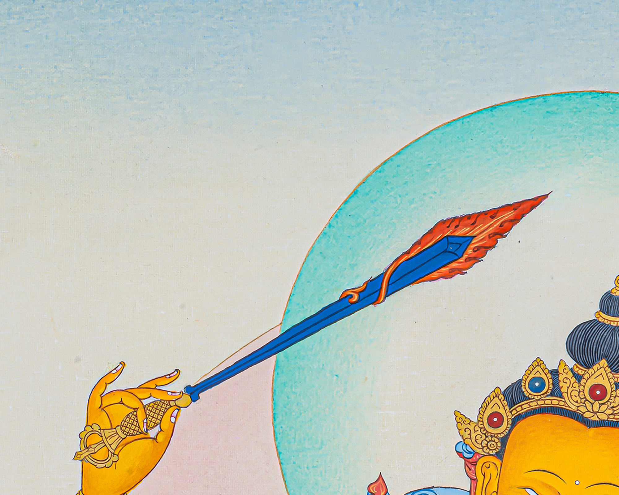 This Manjushri Thangka is well suited for study rooms, meditation spaces, and sacred shrines. It serves as both a contemplative support and a refined work of sacred art, inspiring wisdom, focus, and inner