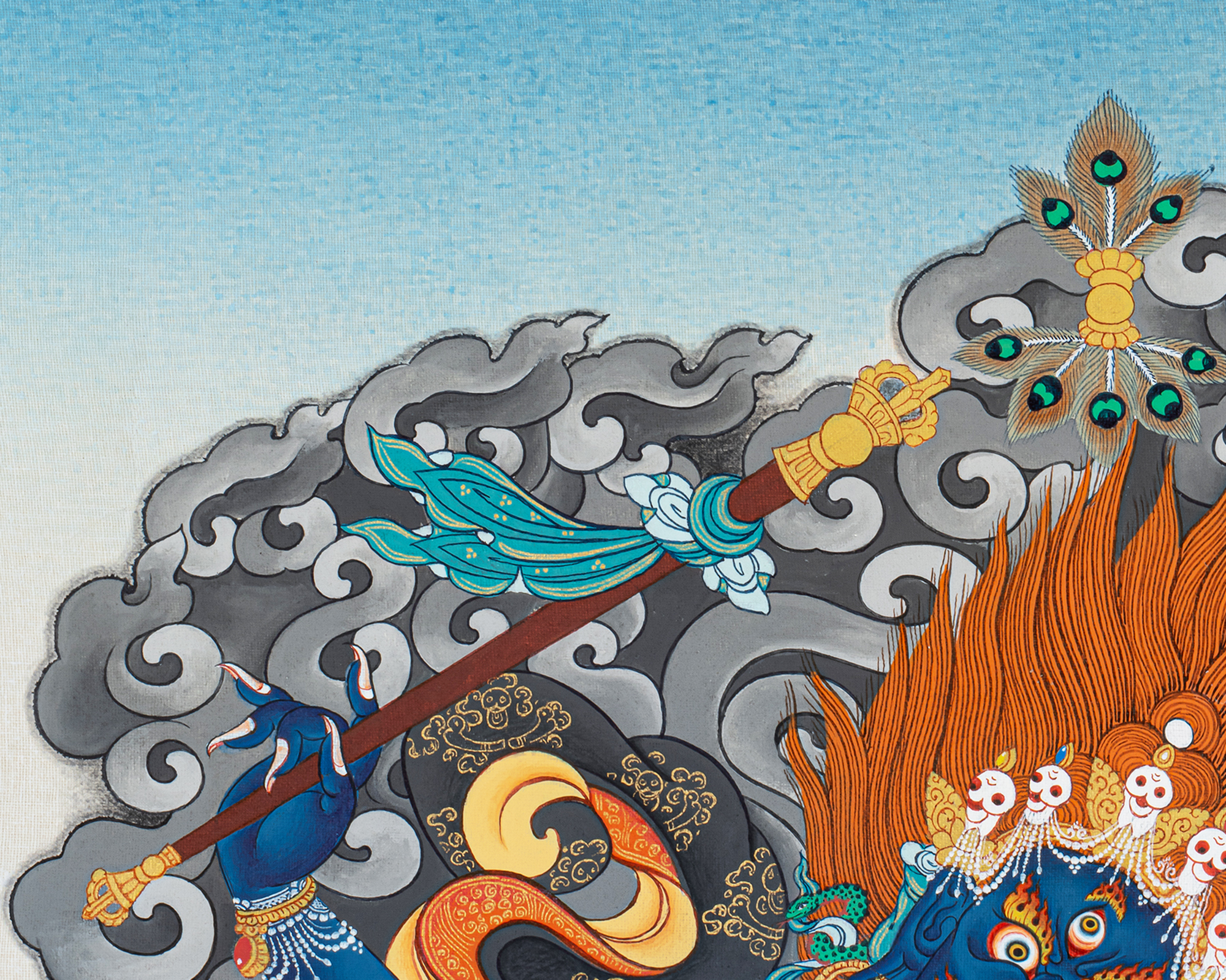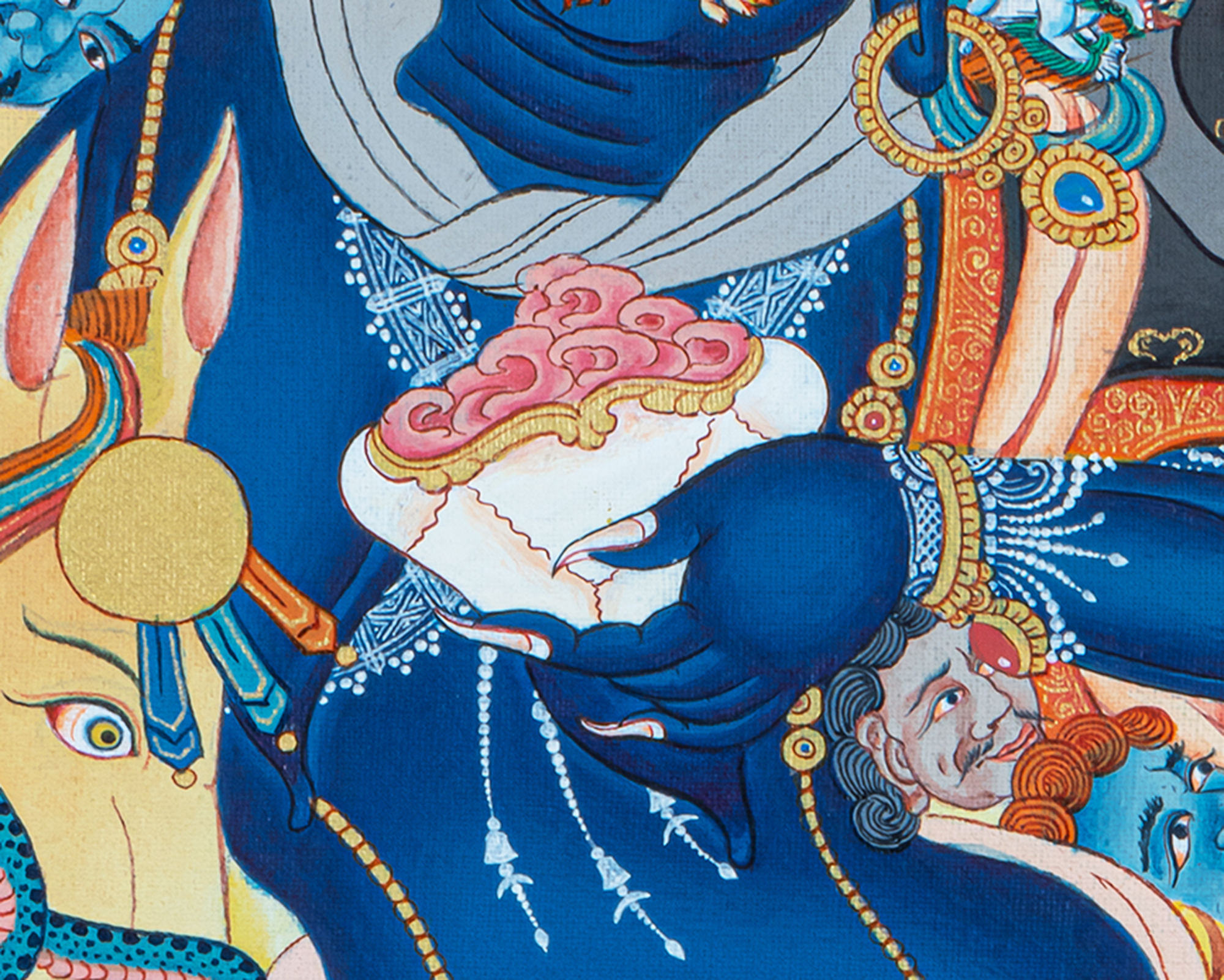 Adorned with symbolic ornaments and surrounded by protective flames, Palden Lhamo embodies enlightened energy that cuts through ignorance and harmful forces. This traditional hand-painted thangka follows authentic Himalayan iconographic guidelines, making it ideal for temples, monasteries, advanced practitioners, and serious collectors of sacred Buddhist art. More than a visual masterpiece, this thangka serves as a powerful support for protection, courage, and unwavering spiritual commitment.