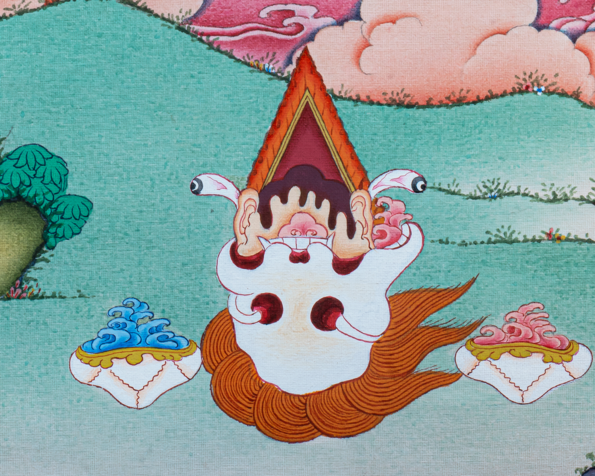 P.S. All thankas are painted taking references from Buddhist books following the correct iconography and by master artists, making it authentic traditional handmade Tibetan art. The subtle facial expression is one factor to distinguish the real effort put into creating this masterpiece.