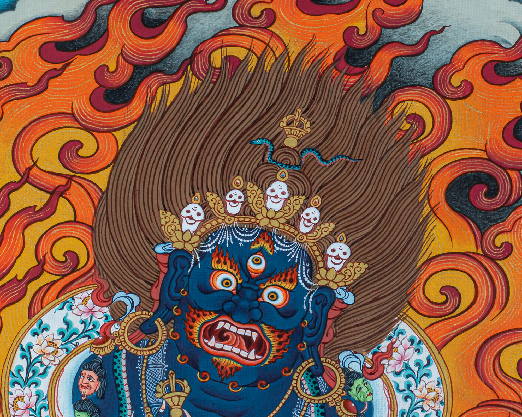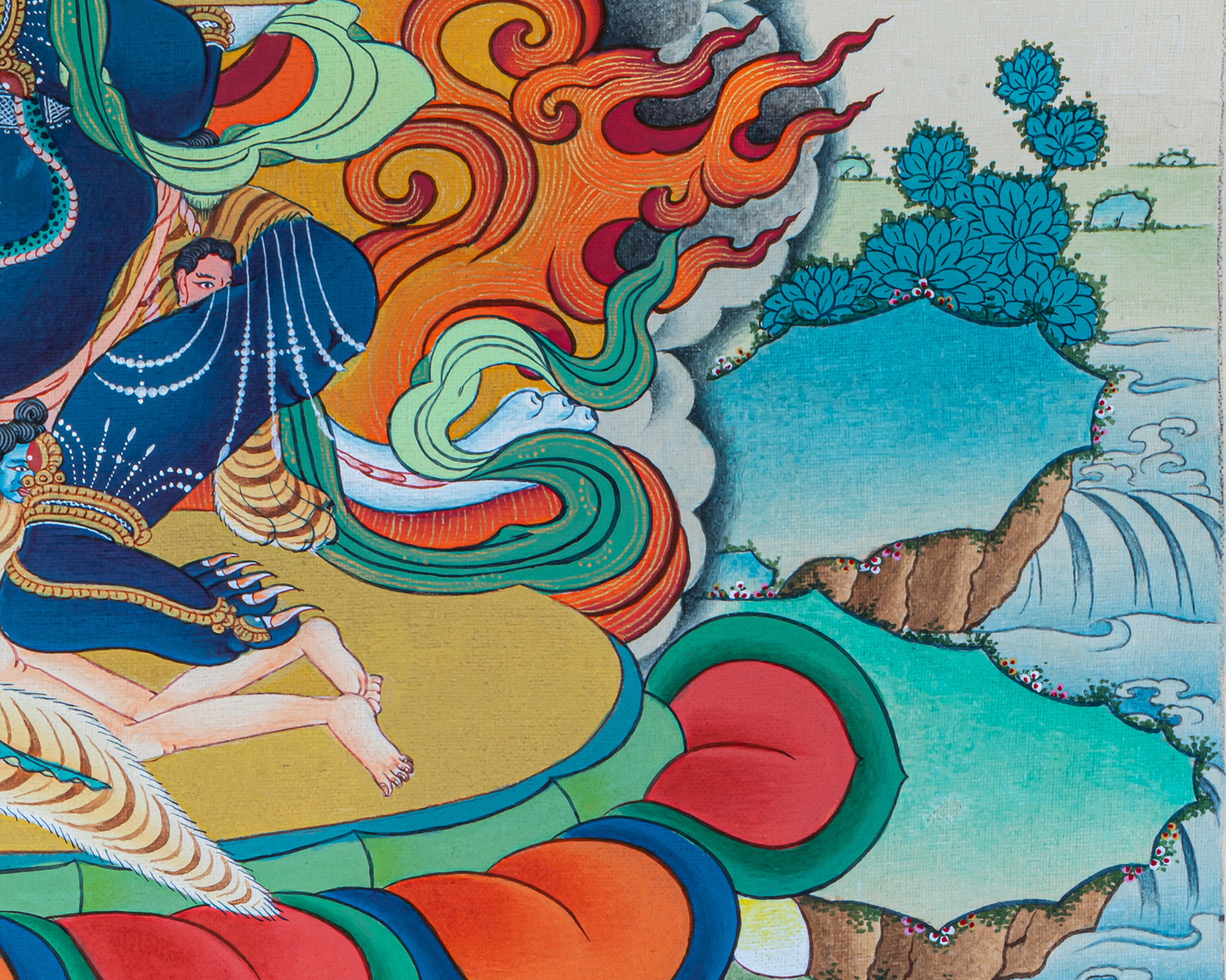 P.S. All thankas are painted taking references from Buddhist books following the correct iconography and by master artists, making it authentic traditional handmade Tibetan art. The subtle facial expression is one factor to distinguish the real effort put into creating this masterpiece.