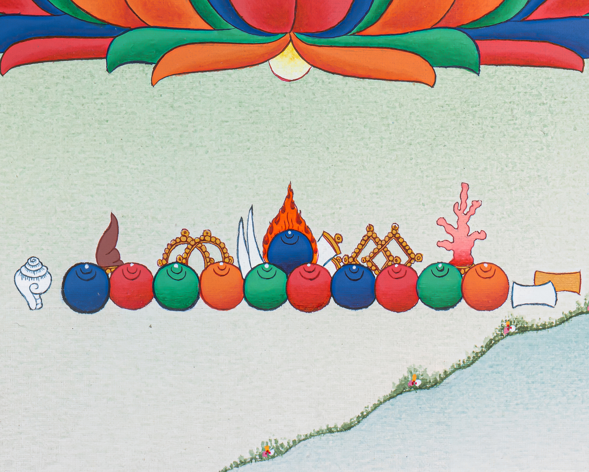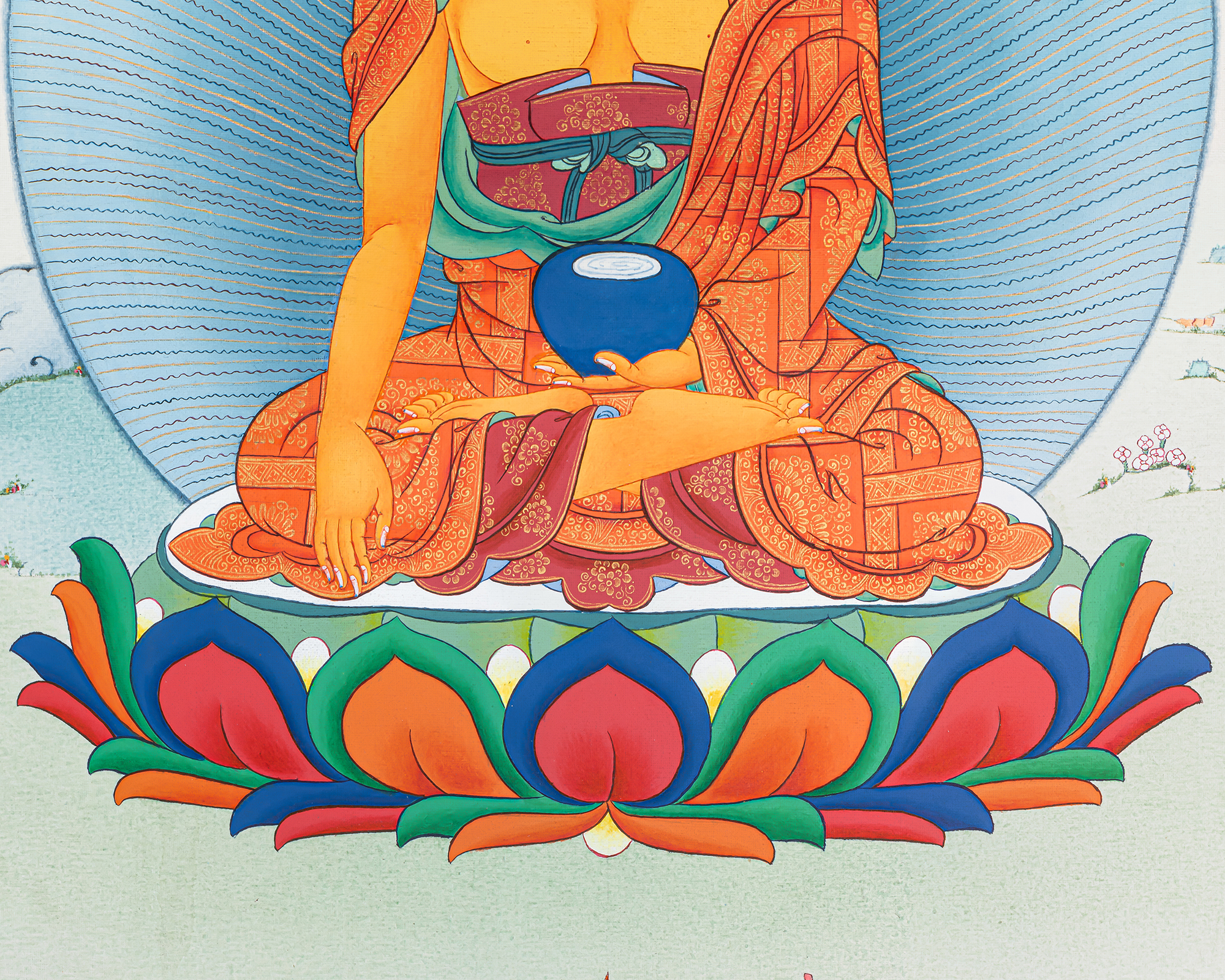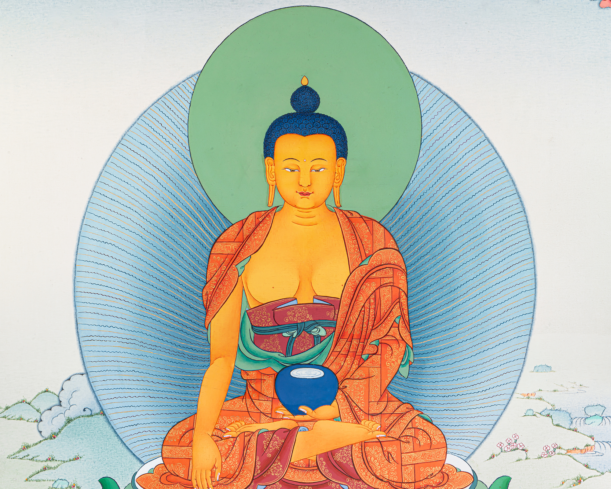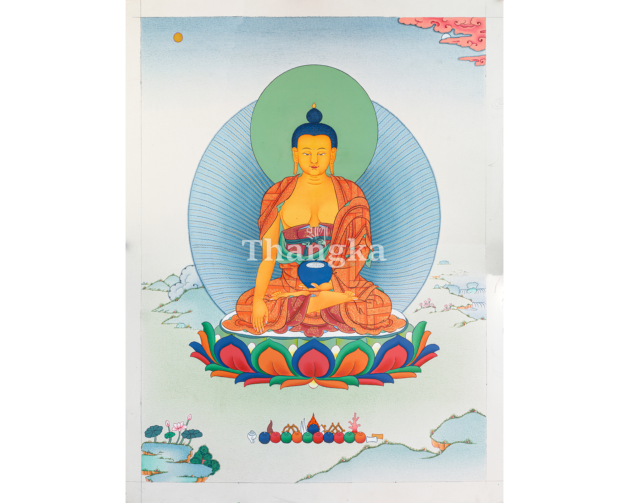 - 100% hand-painted with references from Buddhist books, iconography, and master artists.