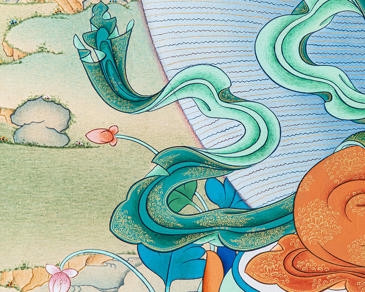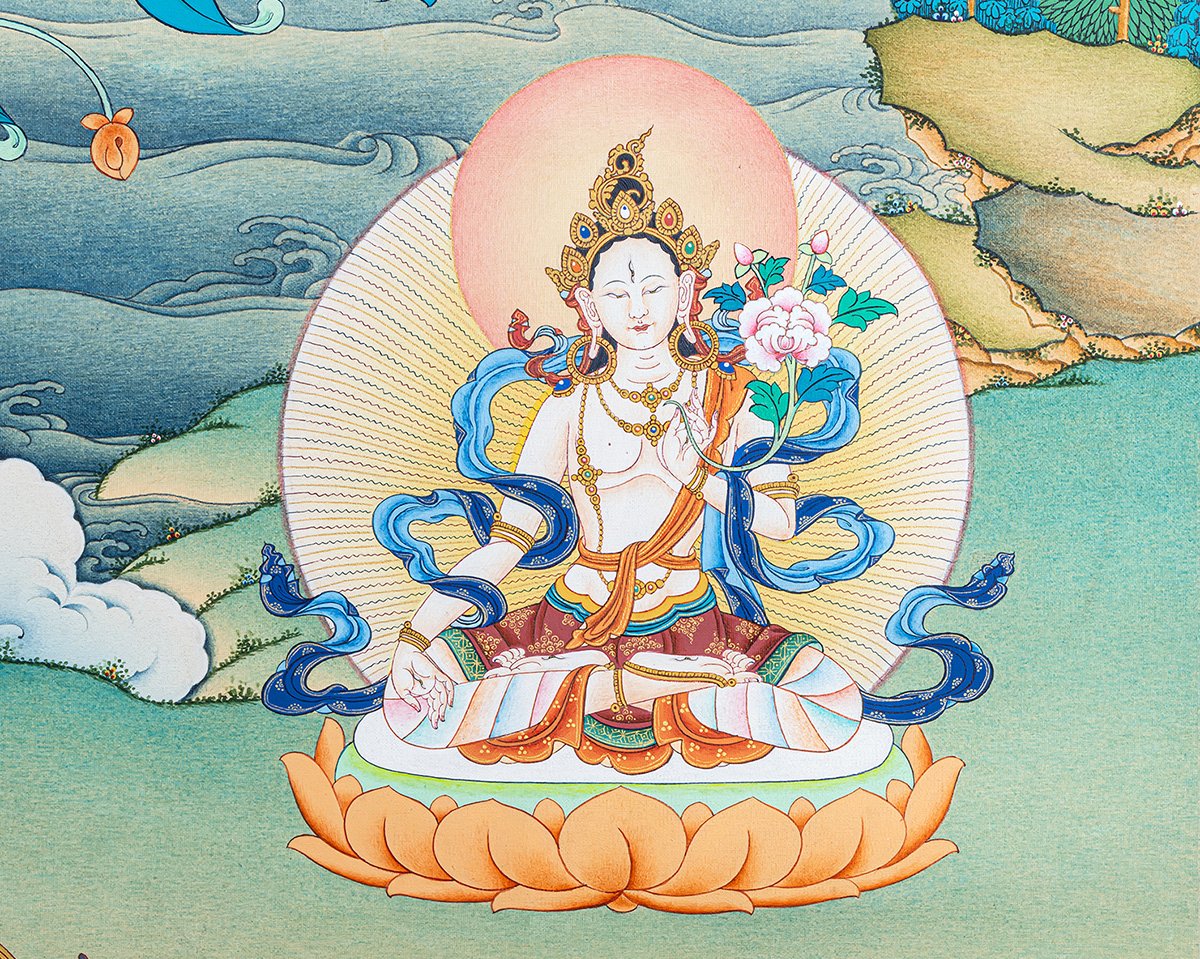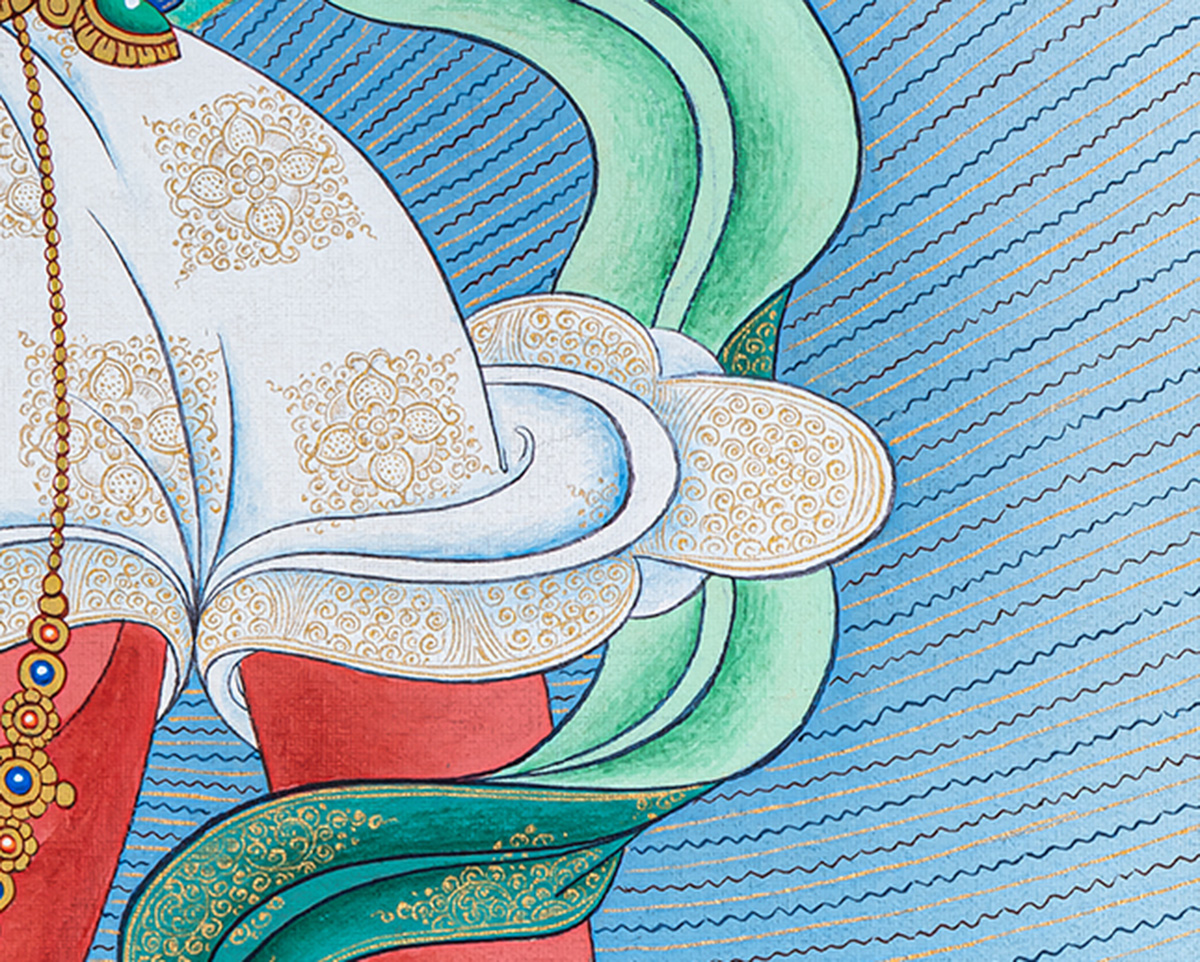 P.S. All thankas are painted taking references from Buddhist books following the correct iconography and by master artists, making it authentic traditional handmade Tibetan art. The subtle facial expression is one factor to distinguish the real effort put into creating this masterpiece.