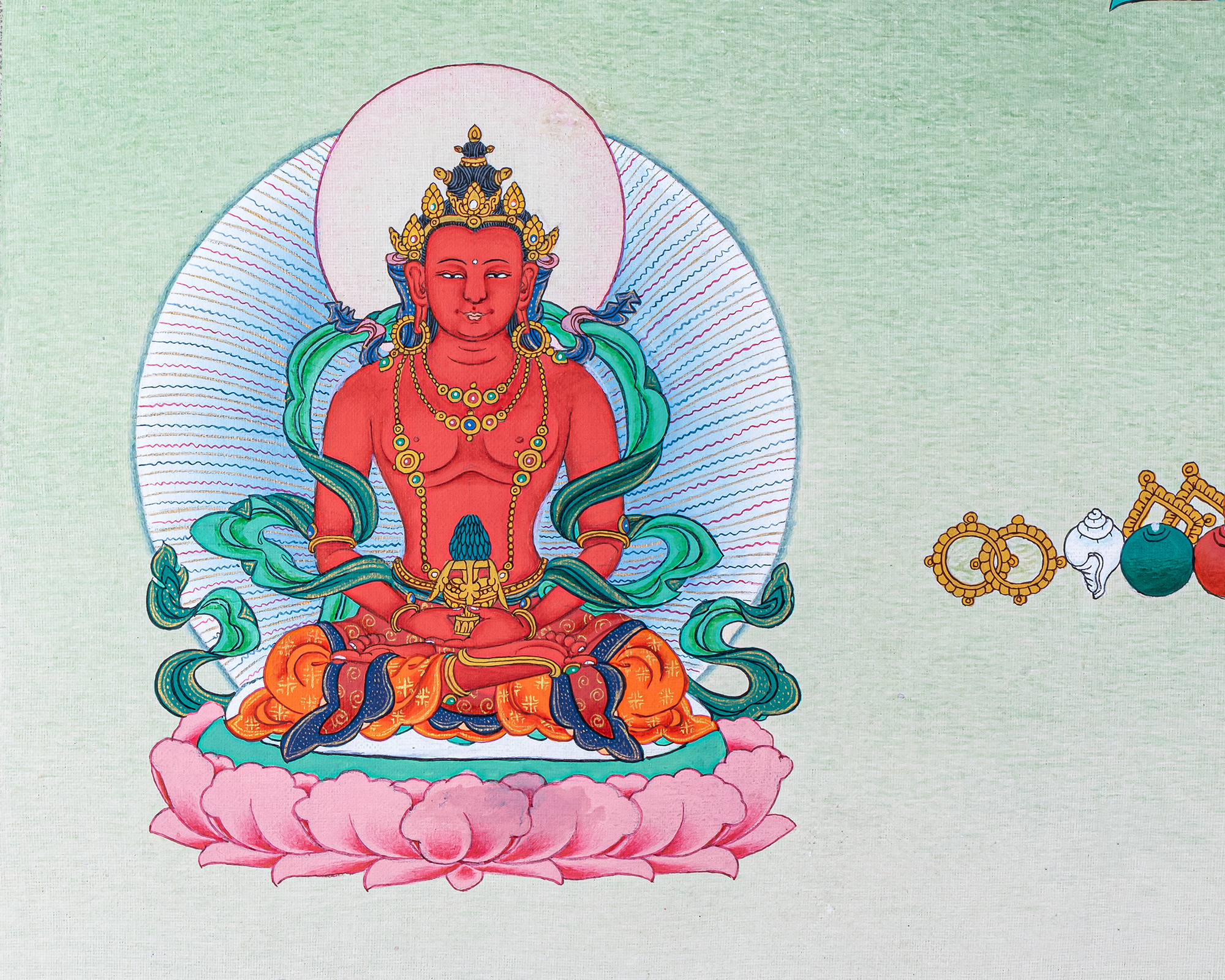 - 100% hand-painted with references from Buddhist books, iconography, and master artists.