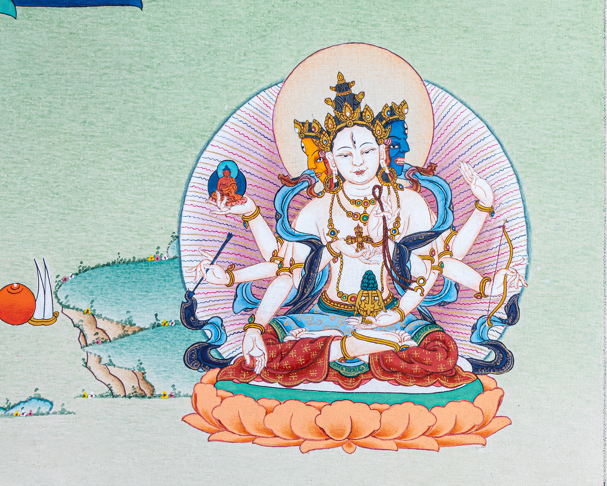 P.S. All thankas are painted taking references from Buddhist books following the correct iconography and by master artists, making it authentic traditional handmade Tibetan art. The subtle facial expression is one factor to distinguish the real effort put into creating this masterpiece.