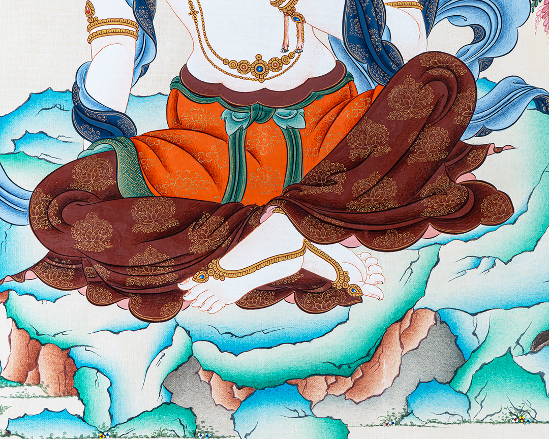 P.S. All thankas are painted taking references from Buddhist books following the correct iconography and by master artists, making it authentic traditional handmade Tibetan art. The subtle facial expression is one factor to distinguish the real effort put into creating this masterpiece.