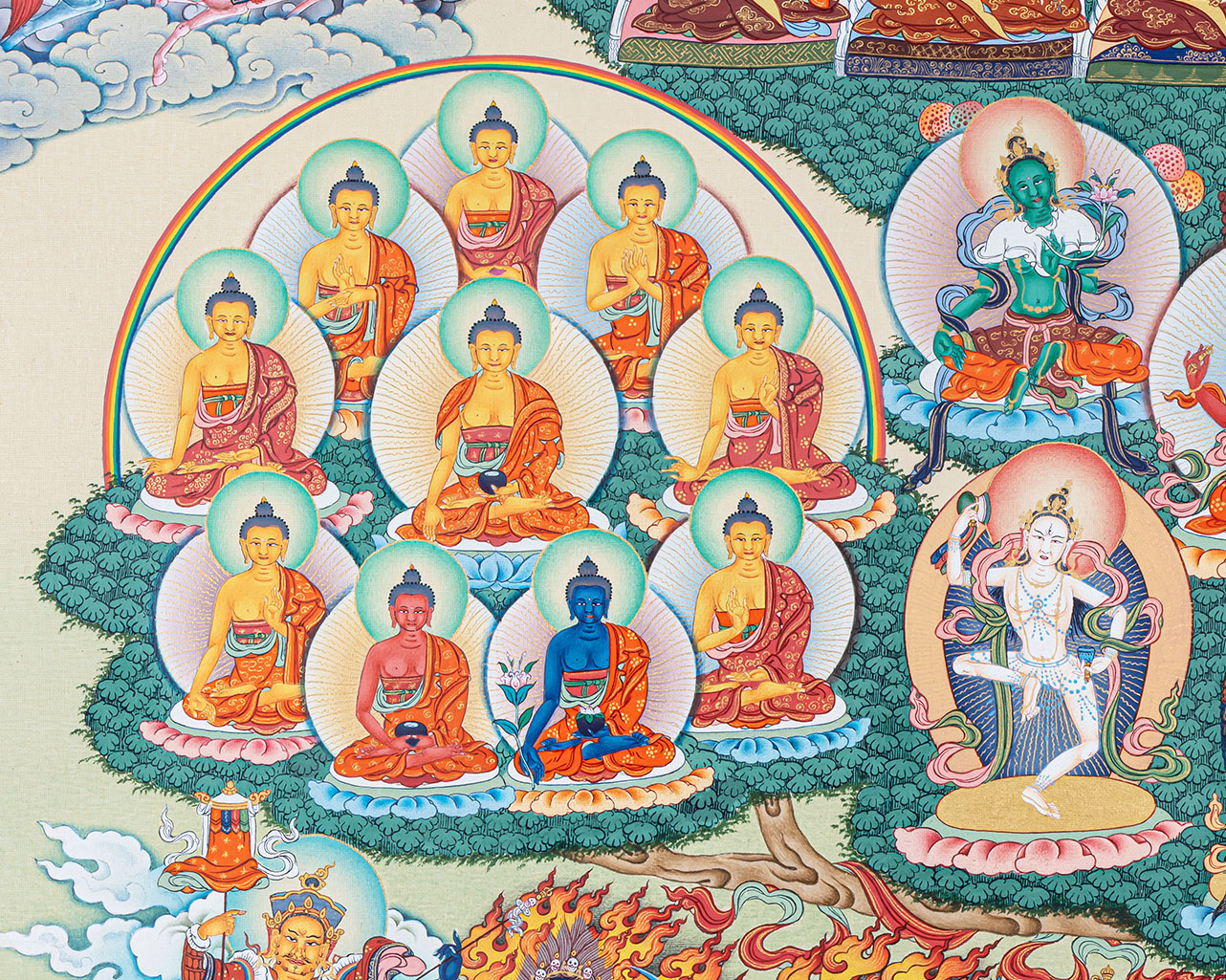 - 100% hand-painted with references from Buddhist books, iconography, and master artists.