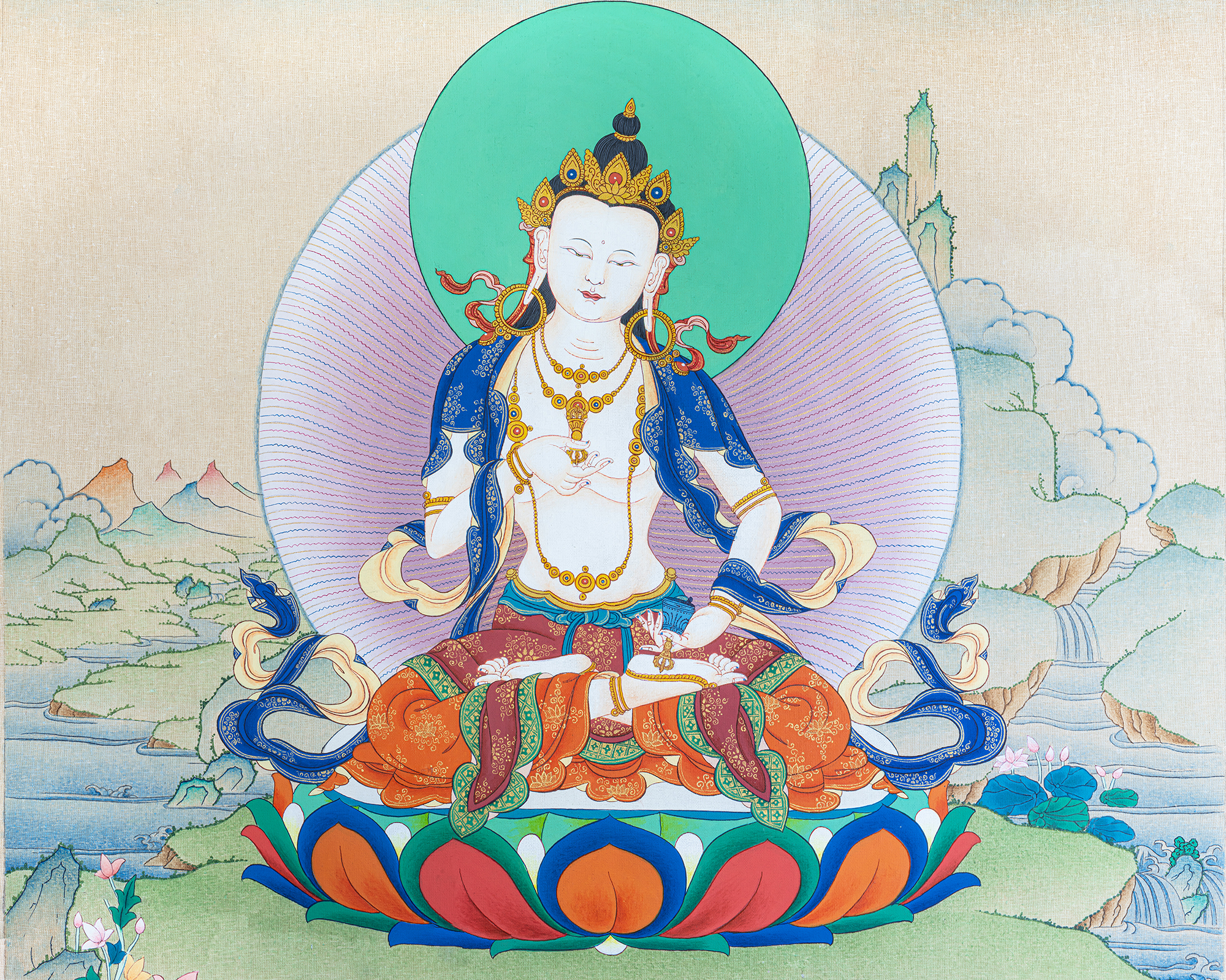 Painted according to classical Himalayan thangka traditions, this sacred artwork is ideal for daily meditation, retreat spaces, monasteries, and home altars. Vajrasattva practice is central in Vajrayana Buddhism for purifying karma, restoring clarity, and renewing spiritual commitment. This thangka serves as both a beautiful devotional image and a powerful support for inner transformation, peace, and fresh beginnings.