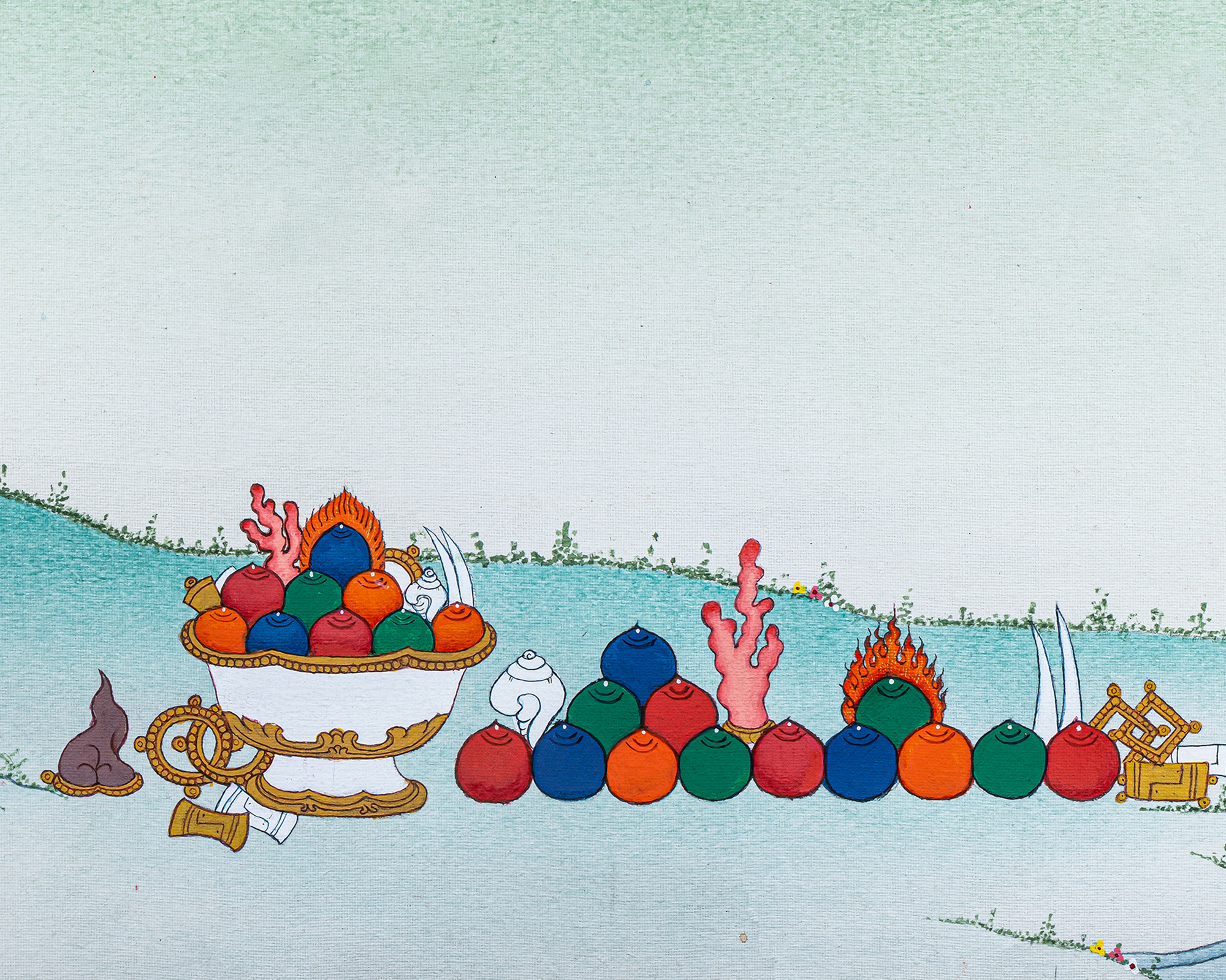 - 100% hand-painted with references from Buddhist books, iconography, and master artists.