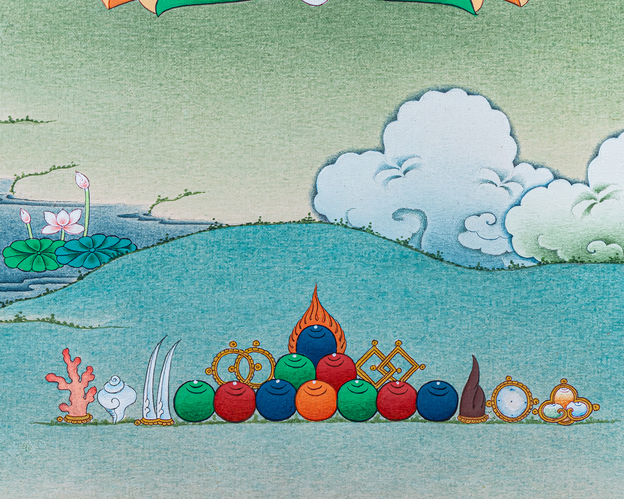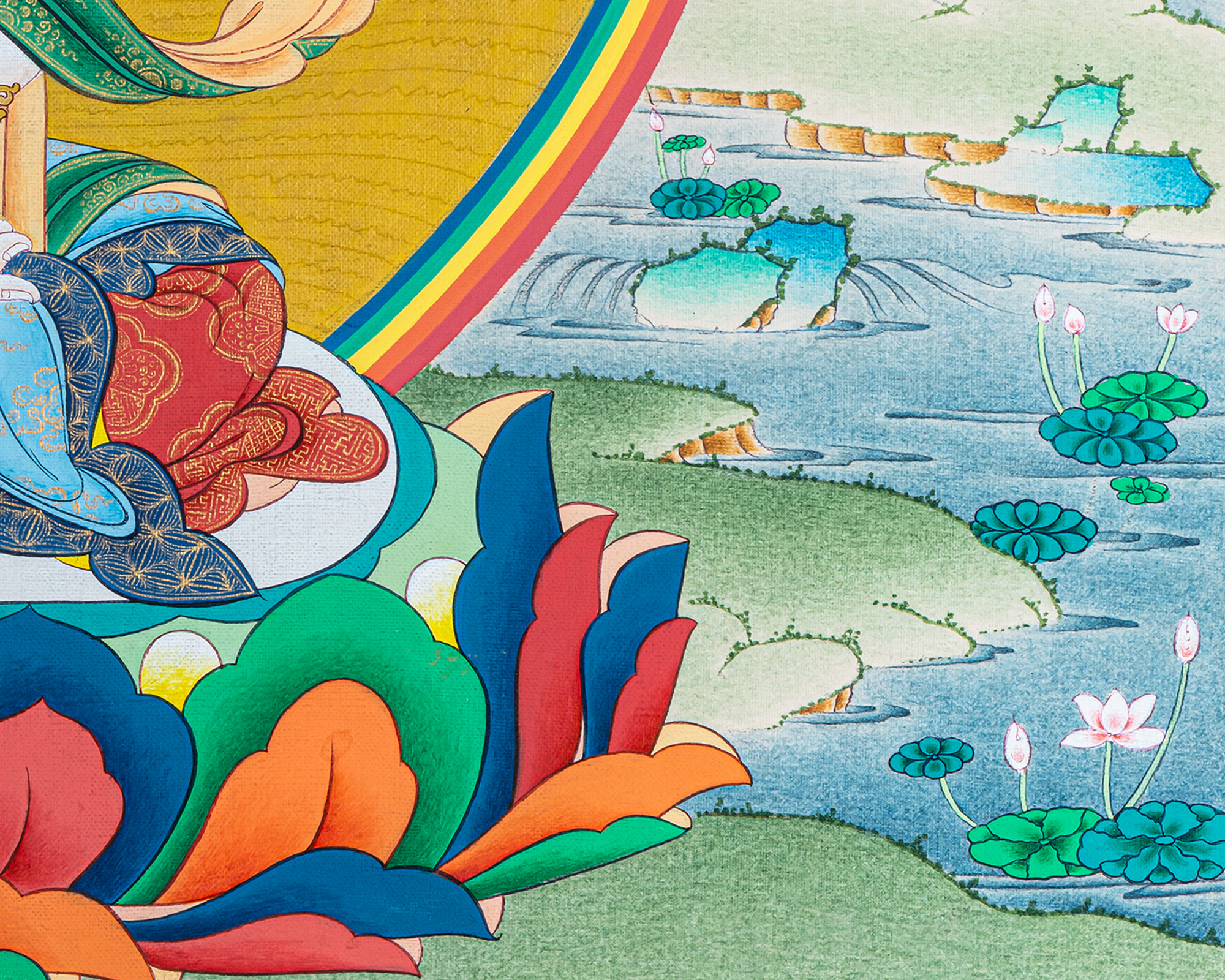 P.S. All thankas are painted taking references from Buddhist books following the correct iconography and by master artists, making it authentic traditional handmade Tibetan art. The subtle facial expression is one factor to distinguish the real effort put into creating this masterpiece.
