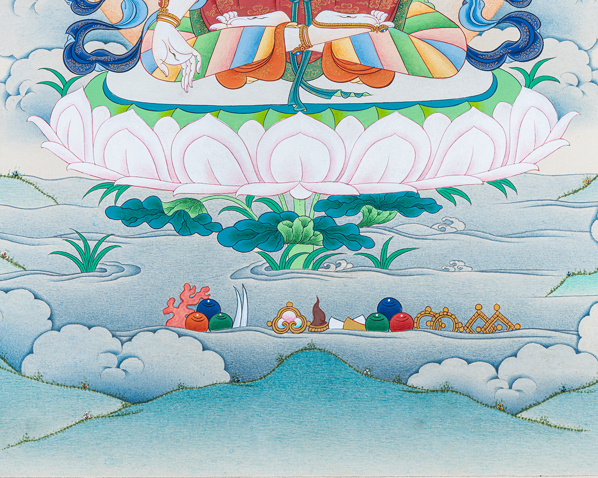 Perfect for collectors, practitioners, and spiritual seekers looking to Buy Authentic Tibetan Thangka or explore Handmade Buddhist Thangka for Sale, this Traditional Thangka Painting from Nepal brings blessings of compassion, protection, and long life into meditation spaces and sacred collections.
