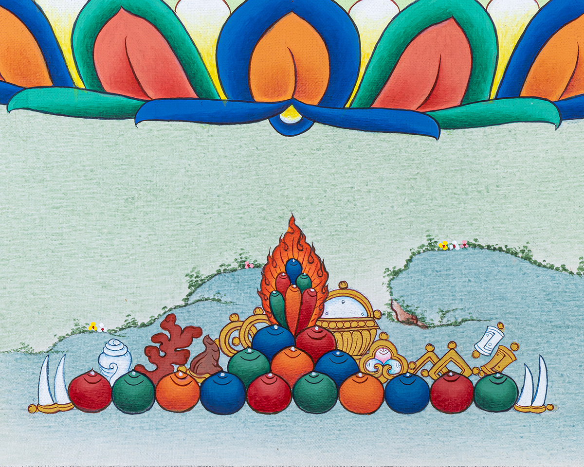 P.S. All thankas are painted taking references from Buddhist books following the correct iconography and by master artists, making it authentic traditional handmade Tibetan art. The subtle facial expression is one factor to distinguish the real effort put into creating this masterpiece.
