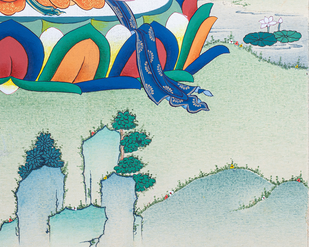 P.S. All thankas are painted taking references from Buddhist books following the correct iconography and by master artists, making it authentic traditional handmade Tibetan art. The subtle facial expression is one factor to distinguish the real effort put into creating this masterpiece.